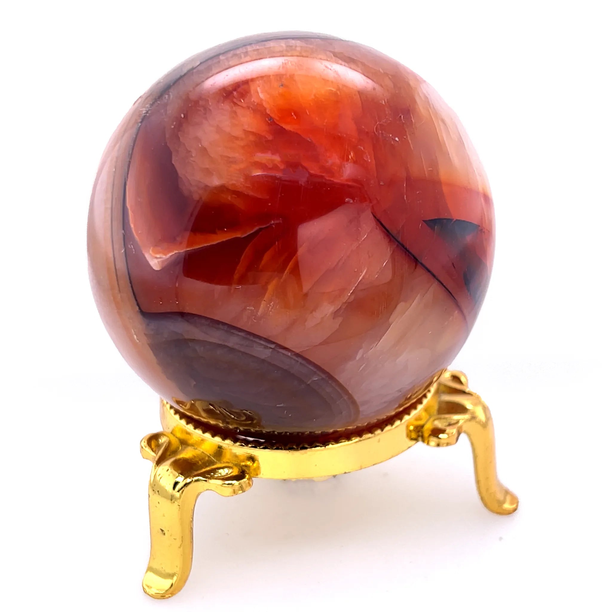 This piece brings together the strength of Carnelian with the balancing energy of the sphere, offering both beauty and meaning for your collection, home, or healing space.