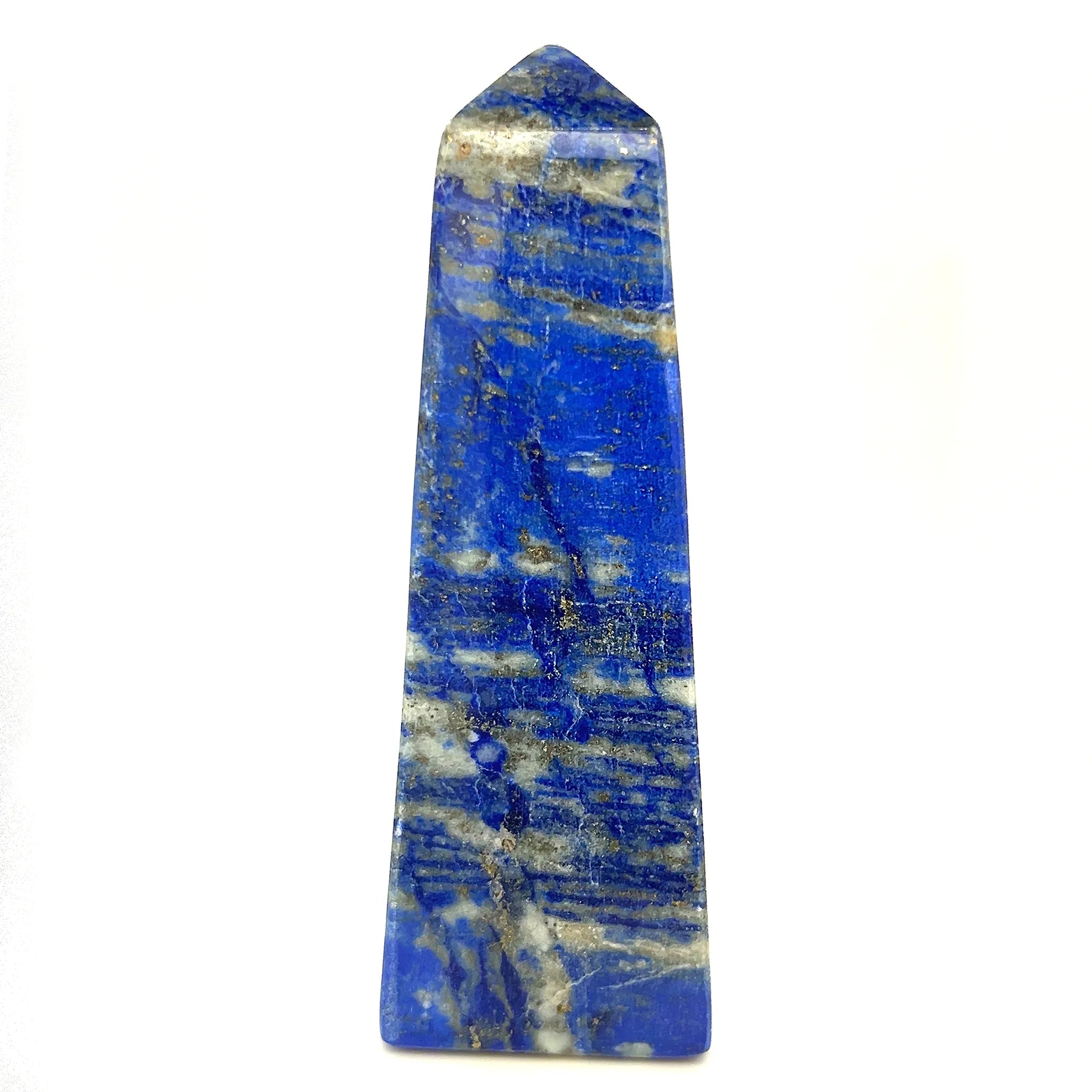 This striking 9cm Lapis Lazuli obelisk features rich royal blue tones and natural golden pyrite specks. Expertly polished to reveal its depth and detail, it carries the symbolic strength of the obelisk shape, associated with focus, clarity, and the channelling of energy upward.
