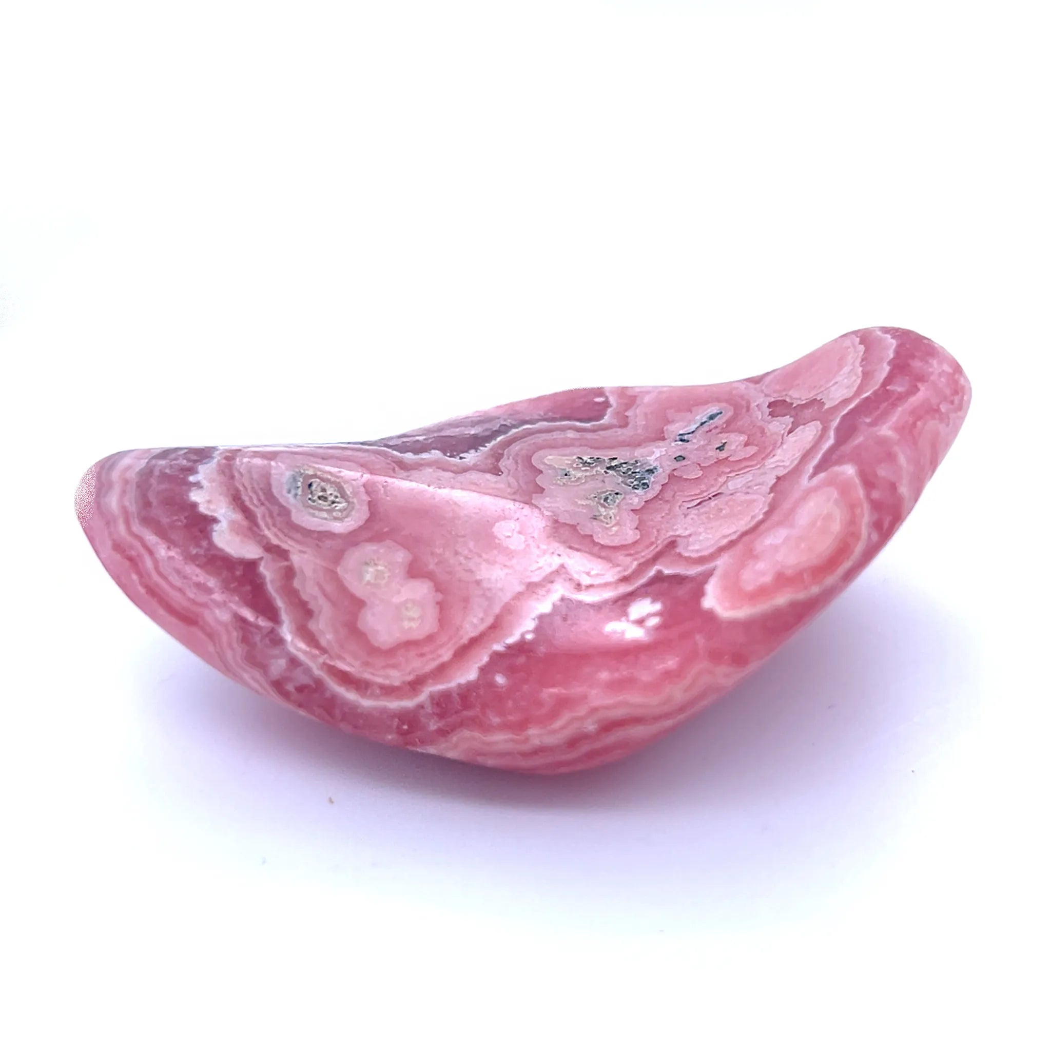 This High-grade Rhodochrosite Polished Specimen displays stunning natural patterns in shades of deep pink and soft cream. This beautifully finished piece highlights the banded layers that make Rhodochrosite so distinctive and desirable among collectors.
