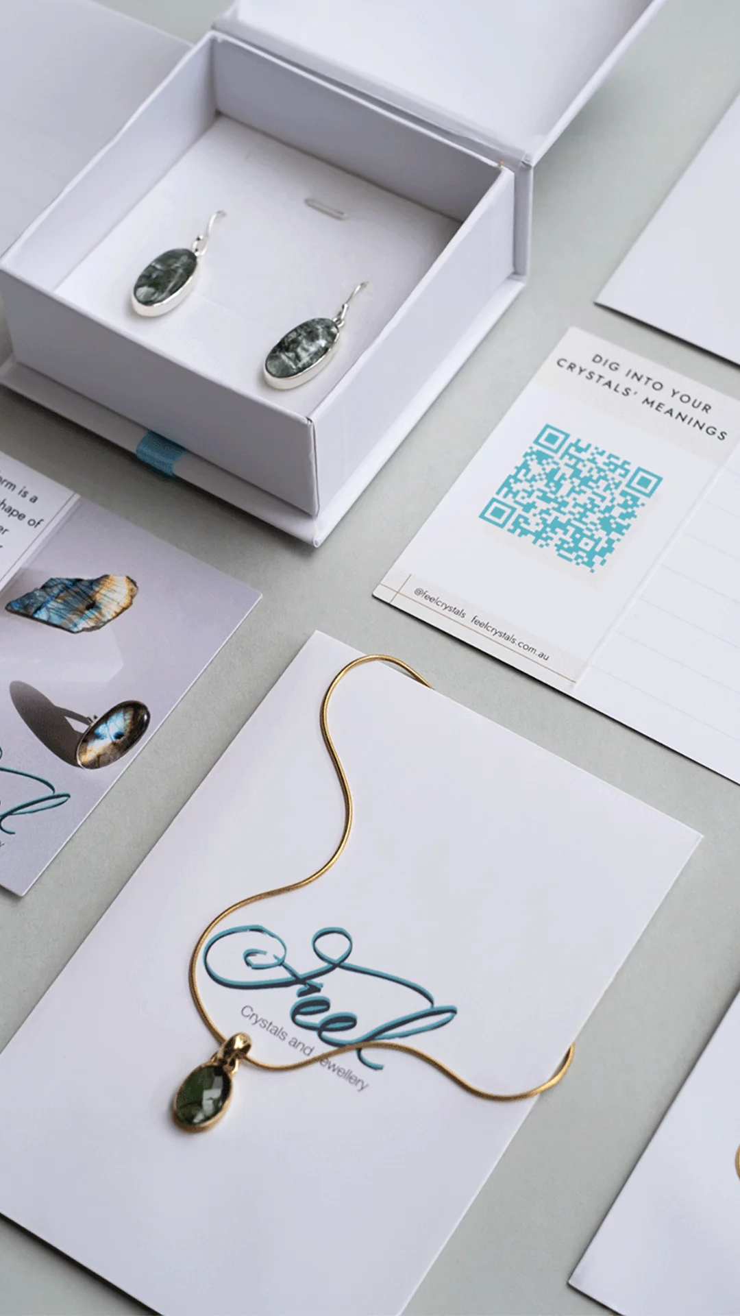Complete with a handwritten card with your crystals' names and a QR code linking to their meanings—a thoughtful touch for gifts or personal insight.