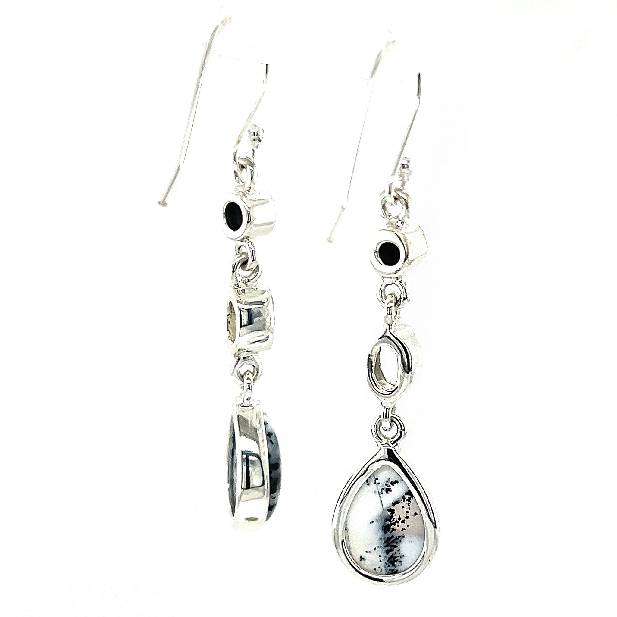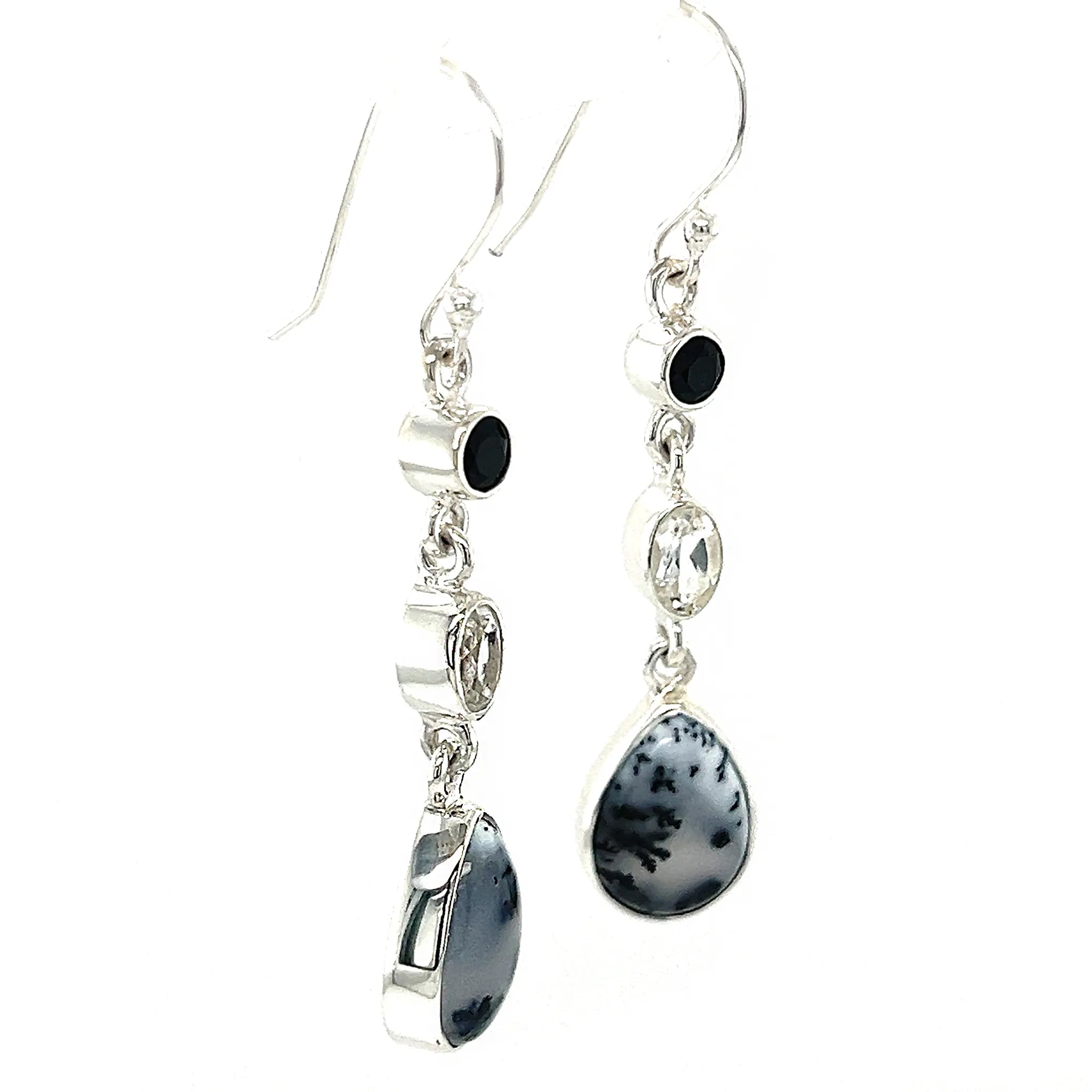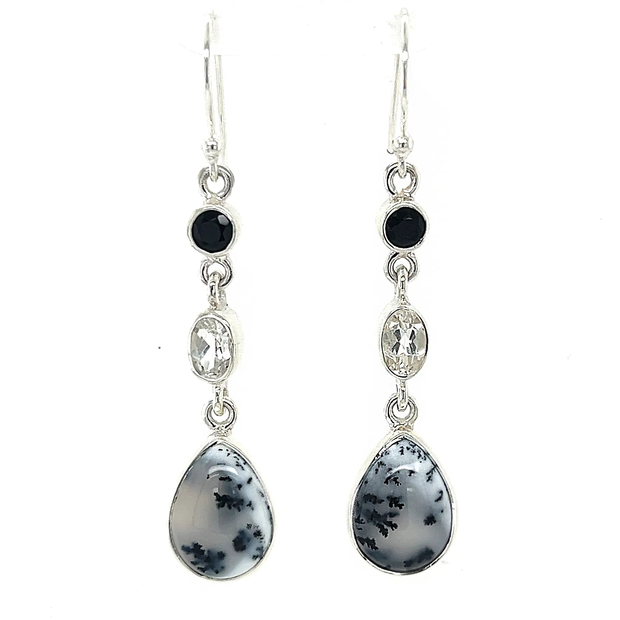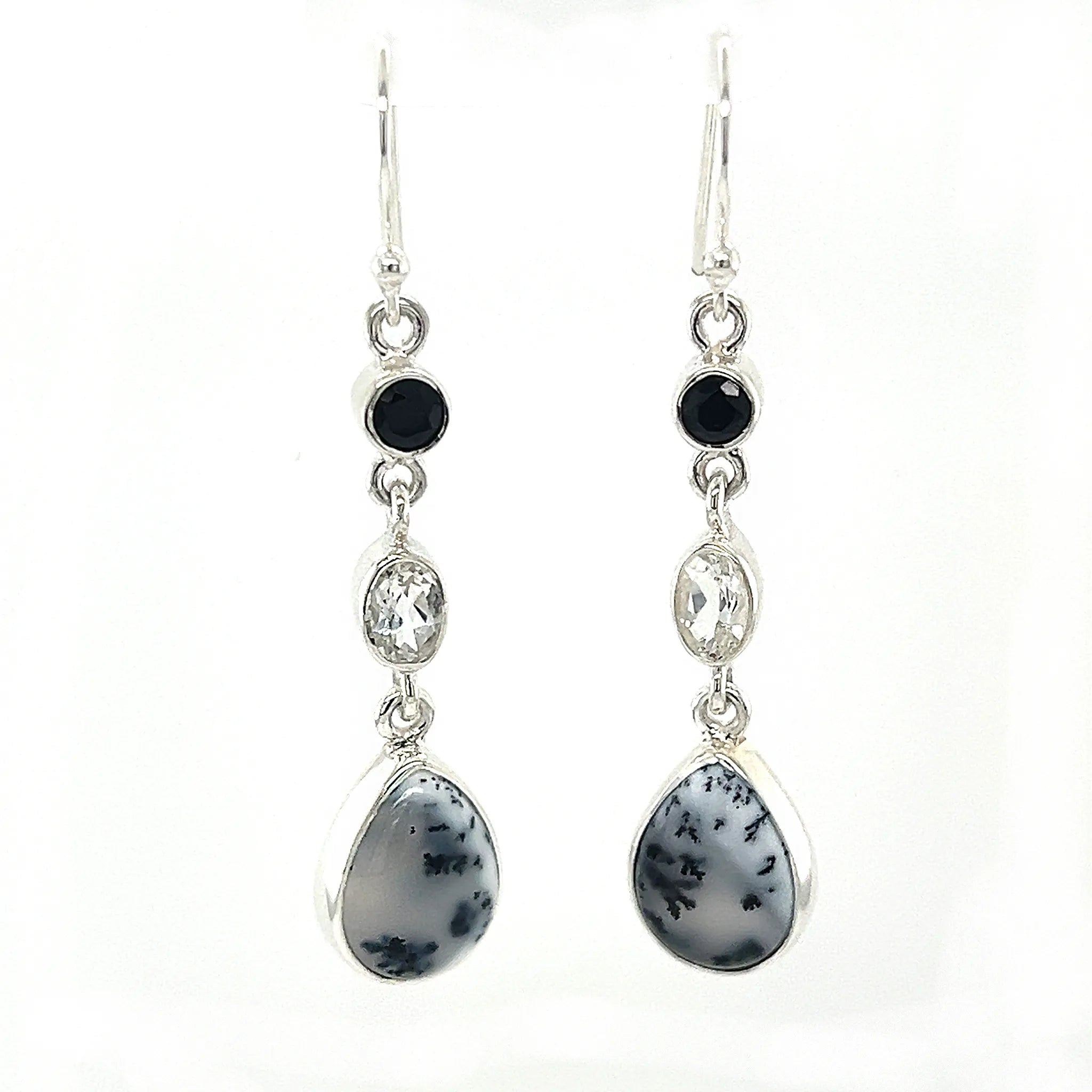 Elegant and eye-catching, these Dendritic Agate, Spinel & Quartz Trio Drop Earrings bring together three stunning gemstones in one refined design.