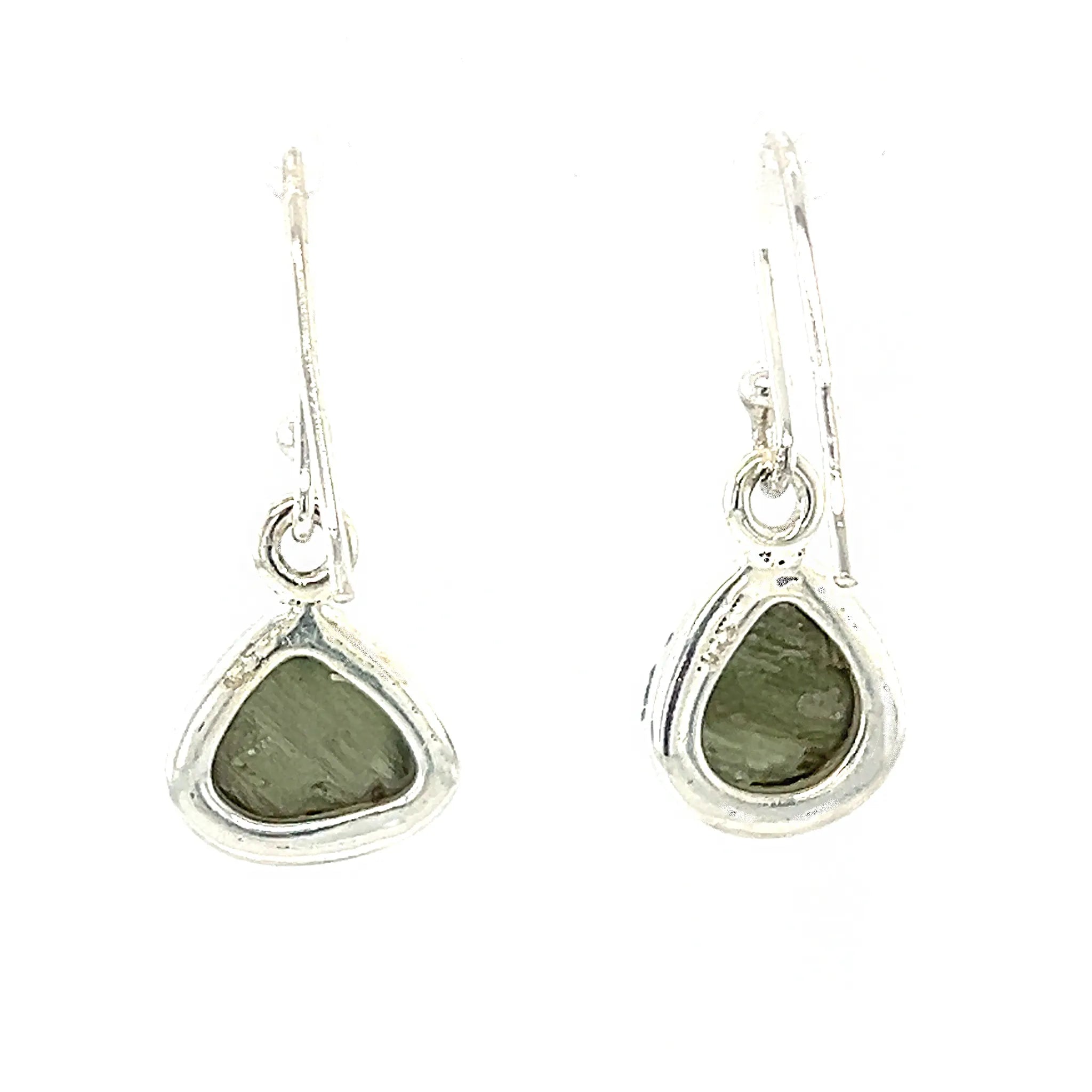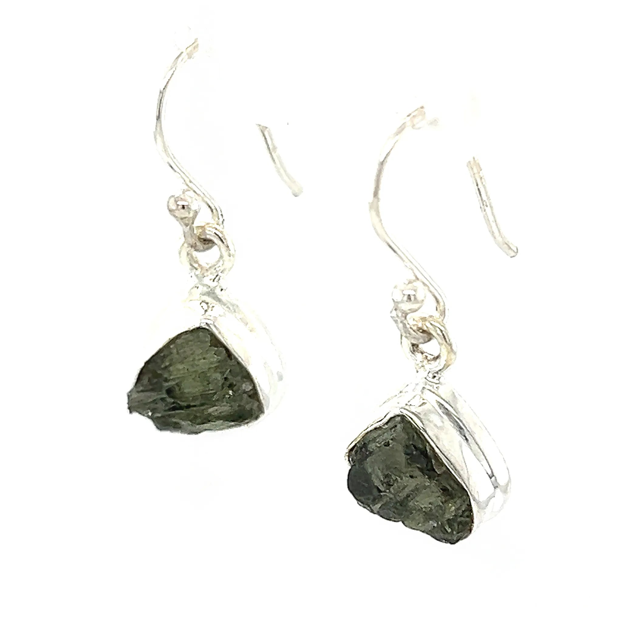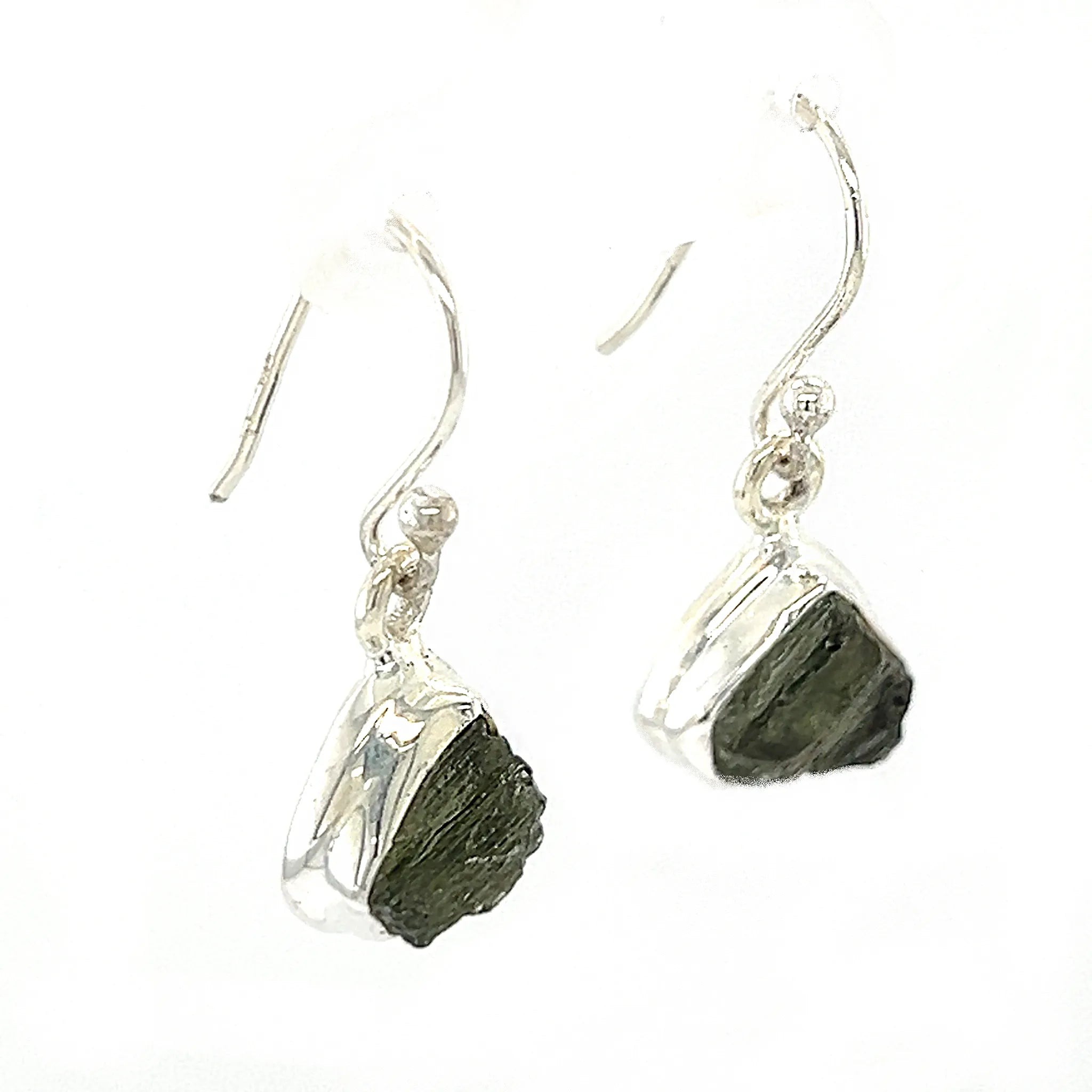 Explore the powerful vibration of our Raw Moldavite Silver Earrings. Crafted in .925 sterling silver, these earrings showcase natural, uncut Moldavite stones, preserving their raw beauty and unique textures.
