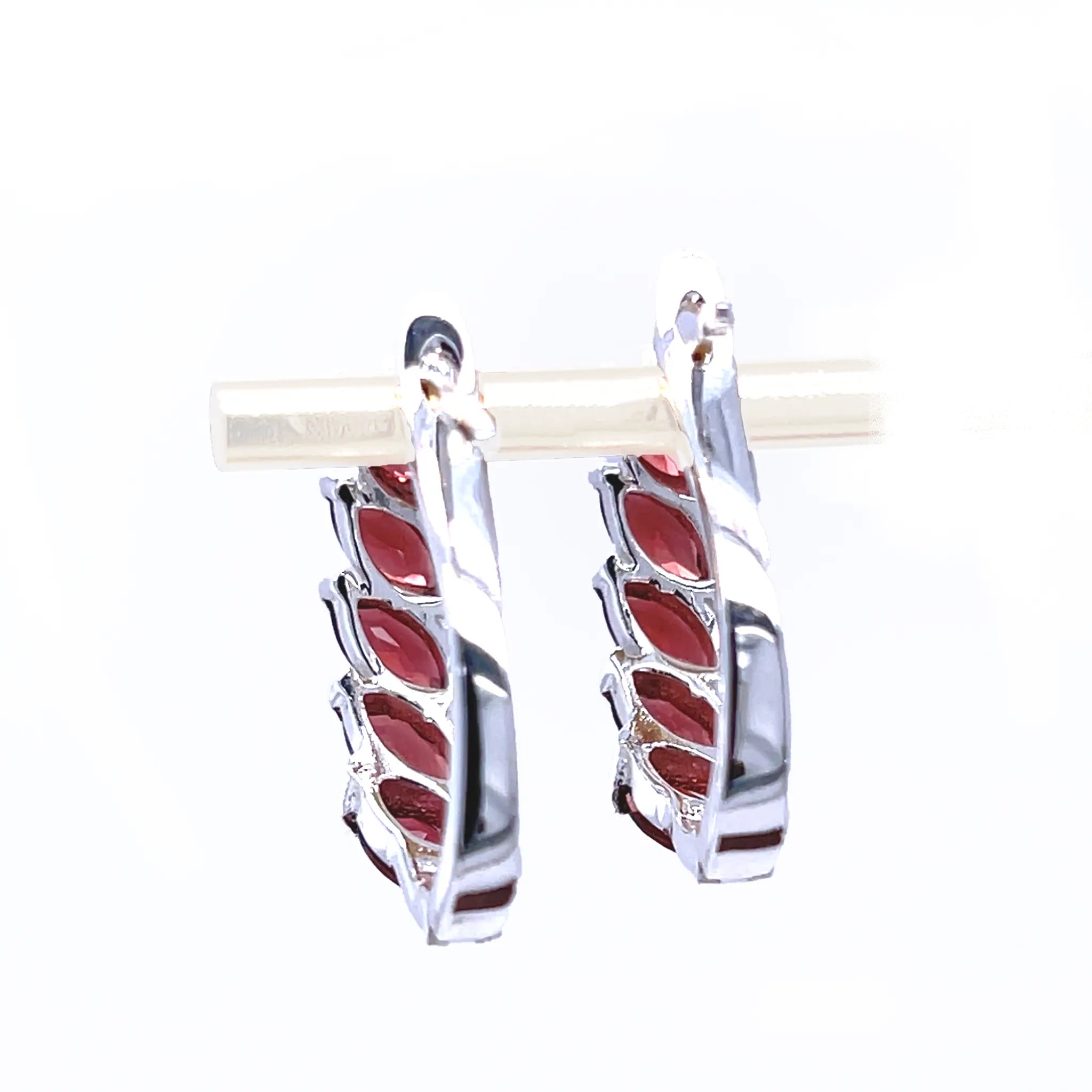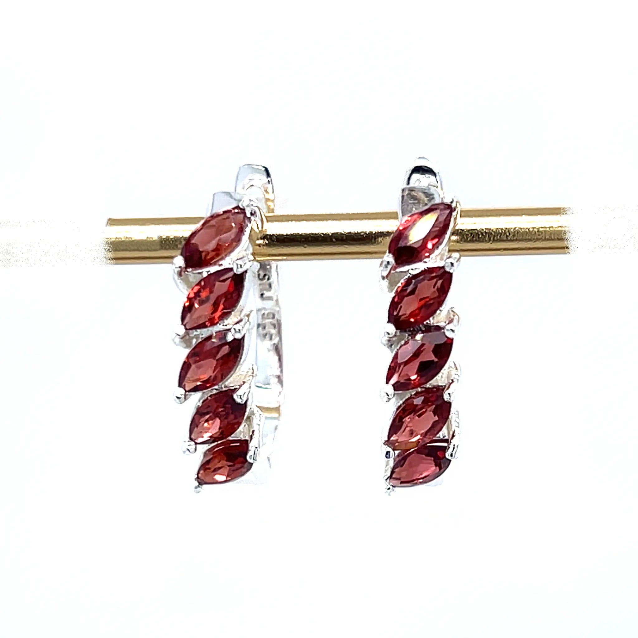 Multi Stone Garnet Faceted Leverback Hoop Earrings