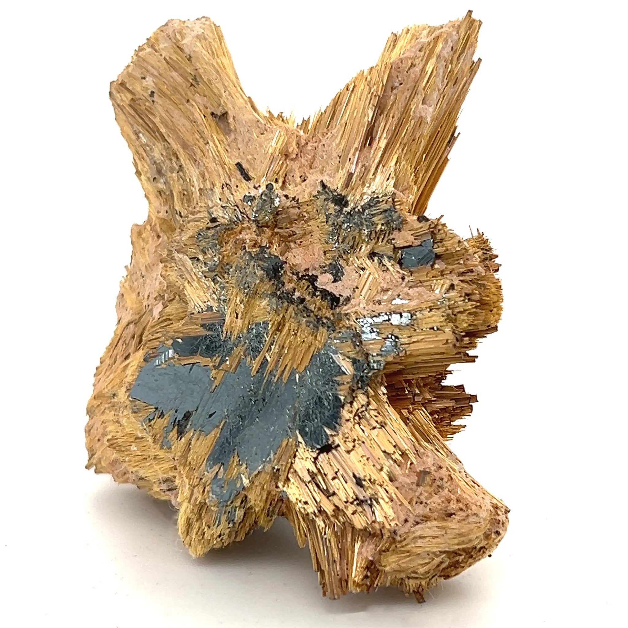 Hematite is an iron oxide mineral with a hardness of 5 to 6. It is commonly found in massive form, although tabular or rosette crystals do occur. Fine grades of Hematite suitable for polishing are found in Brazil.