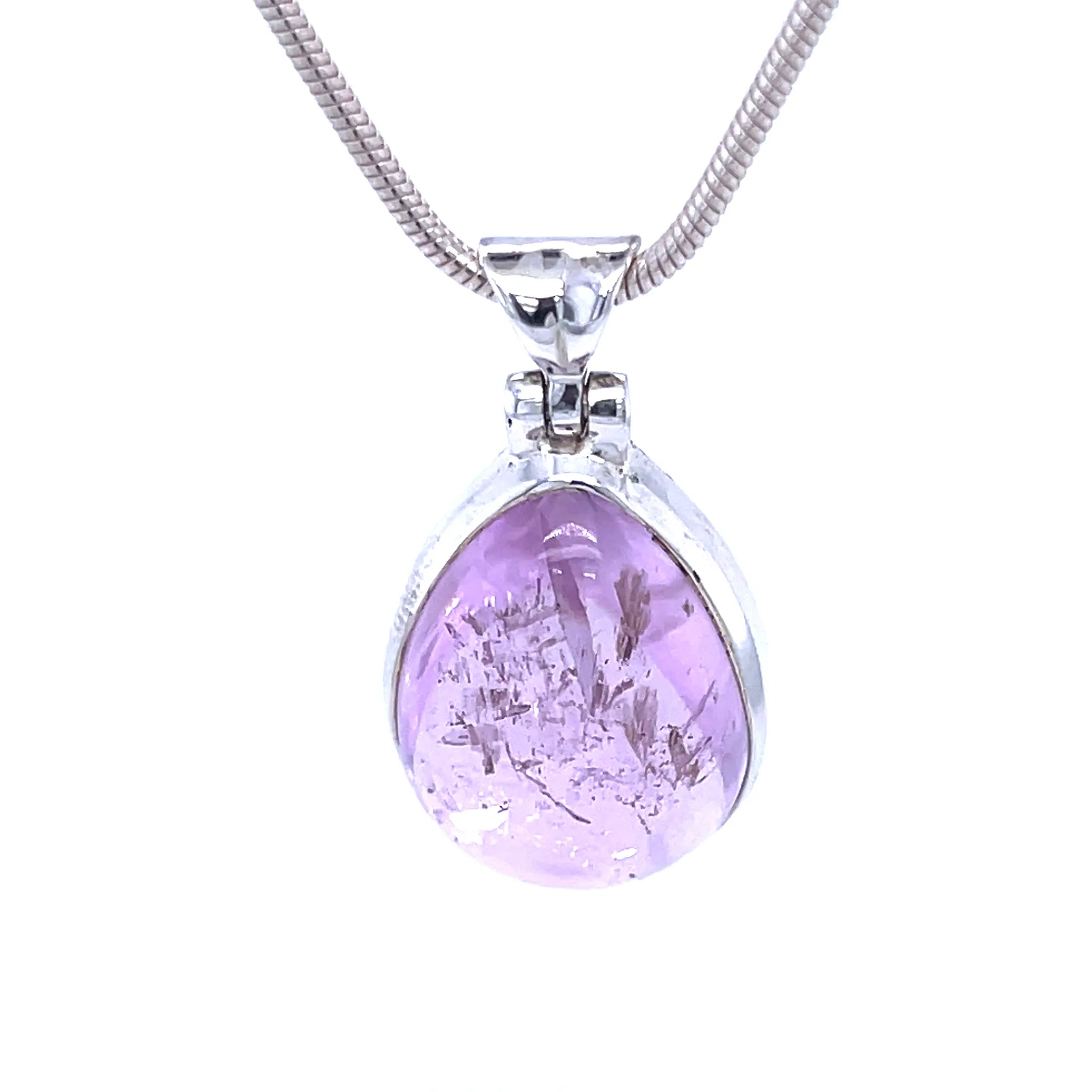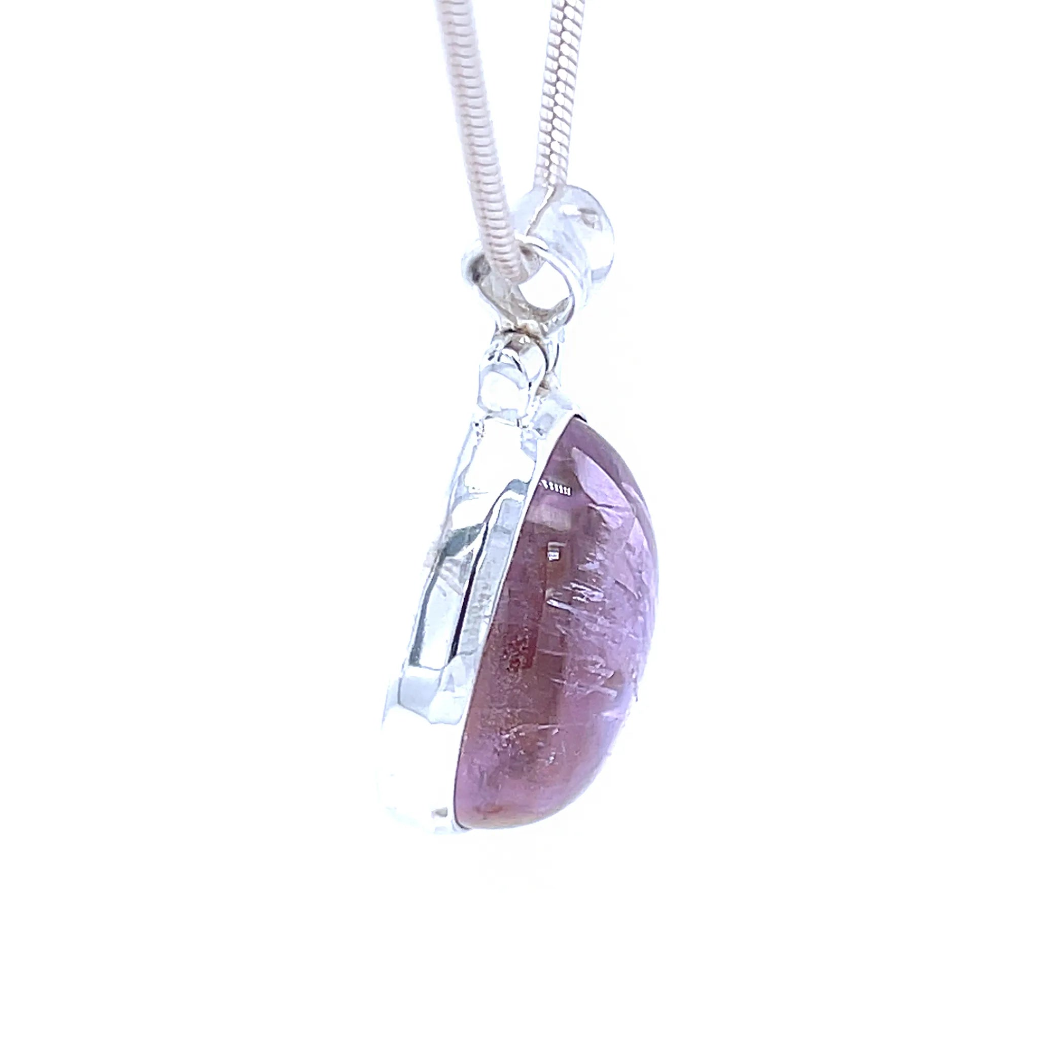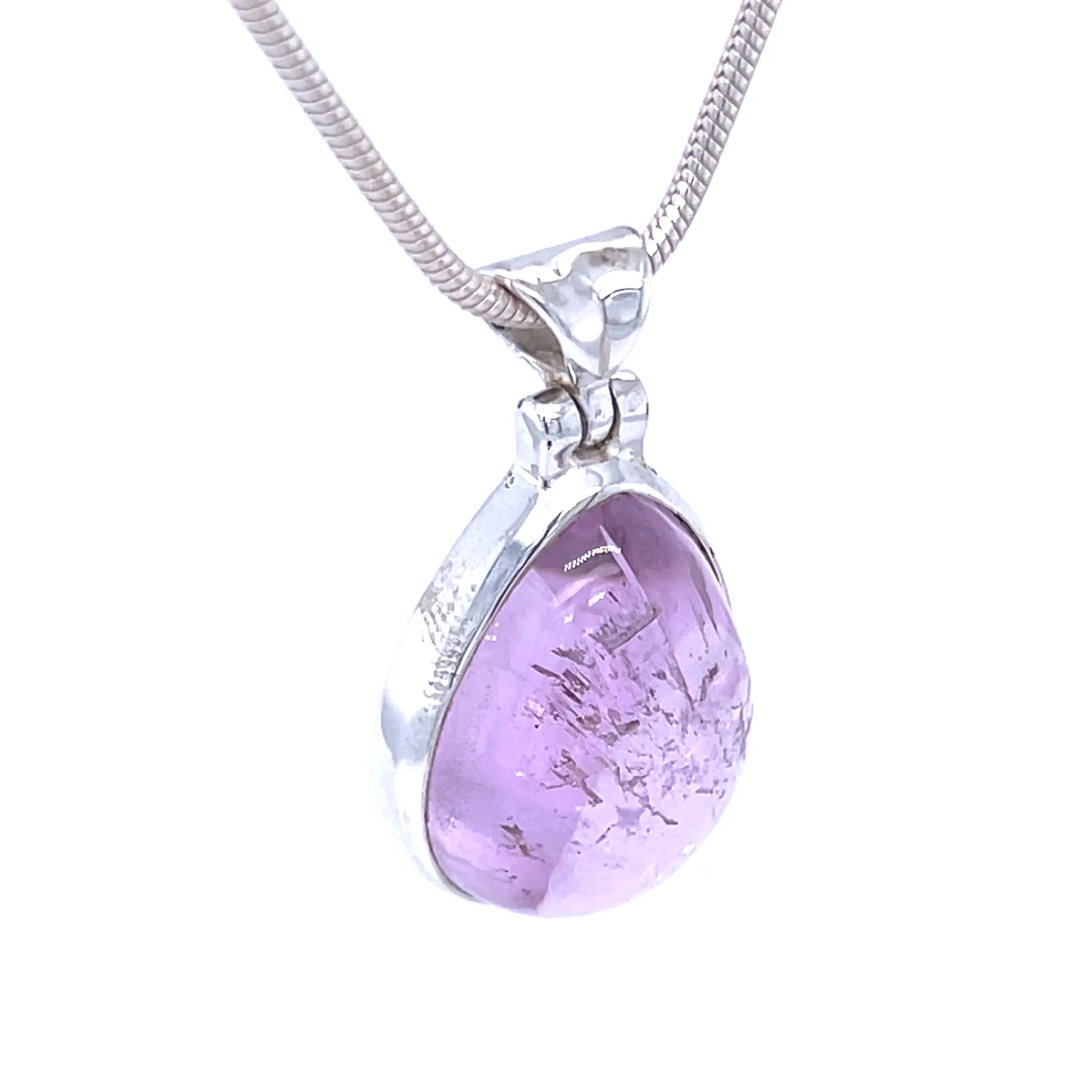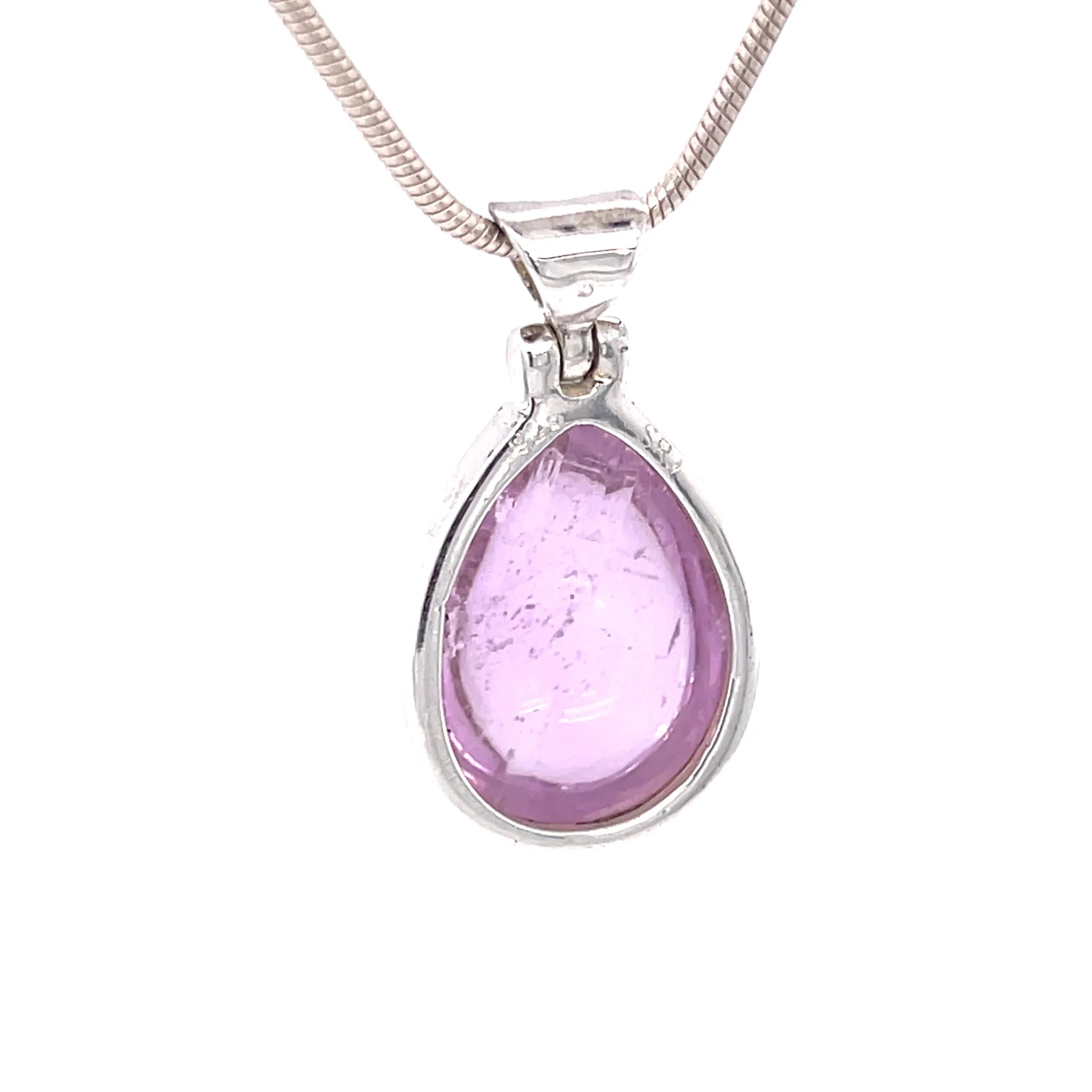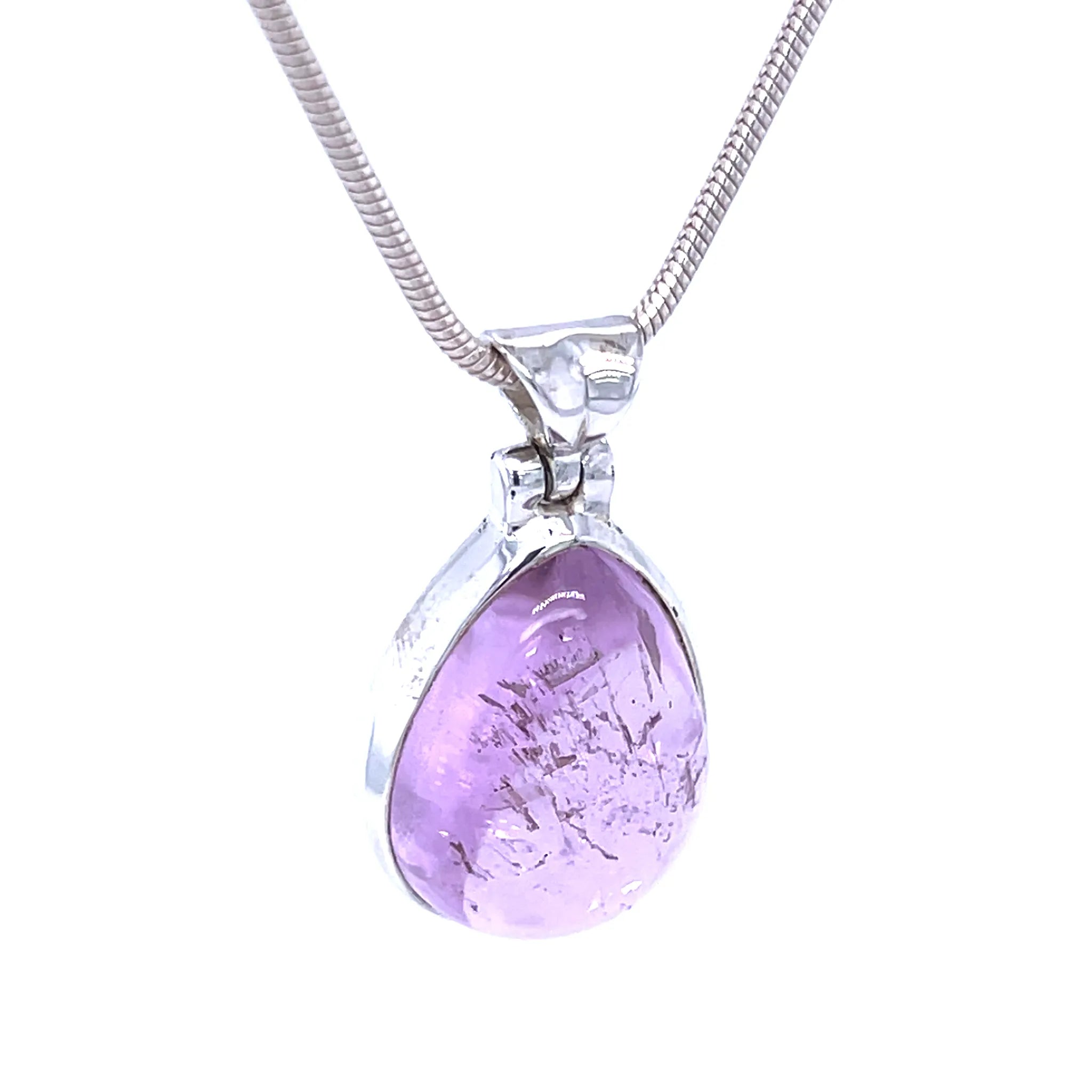 With its soft lavender glow and elegant teardrop shape, this Statement High Grade Cabochon Kunzite Pendant speaks with quiet beauty.