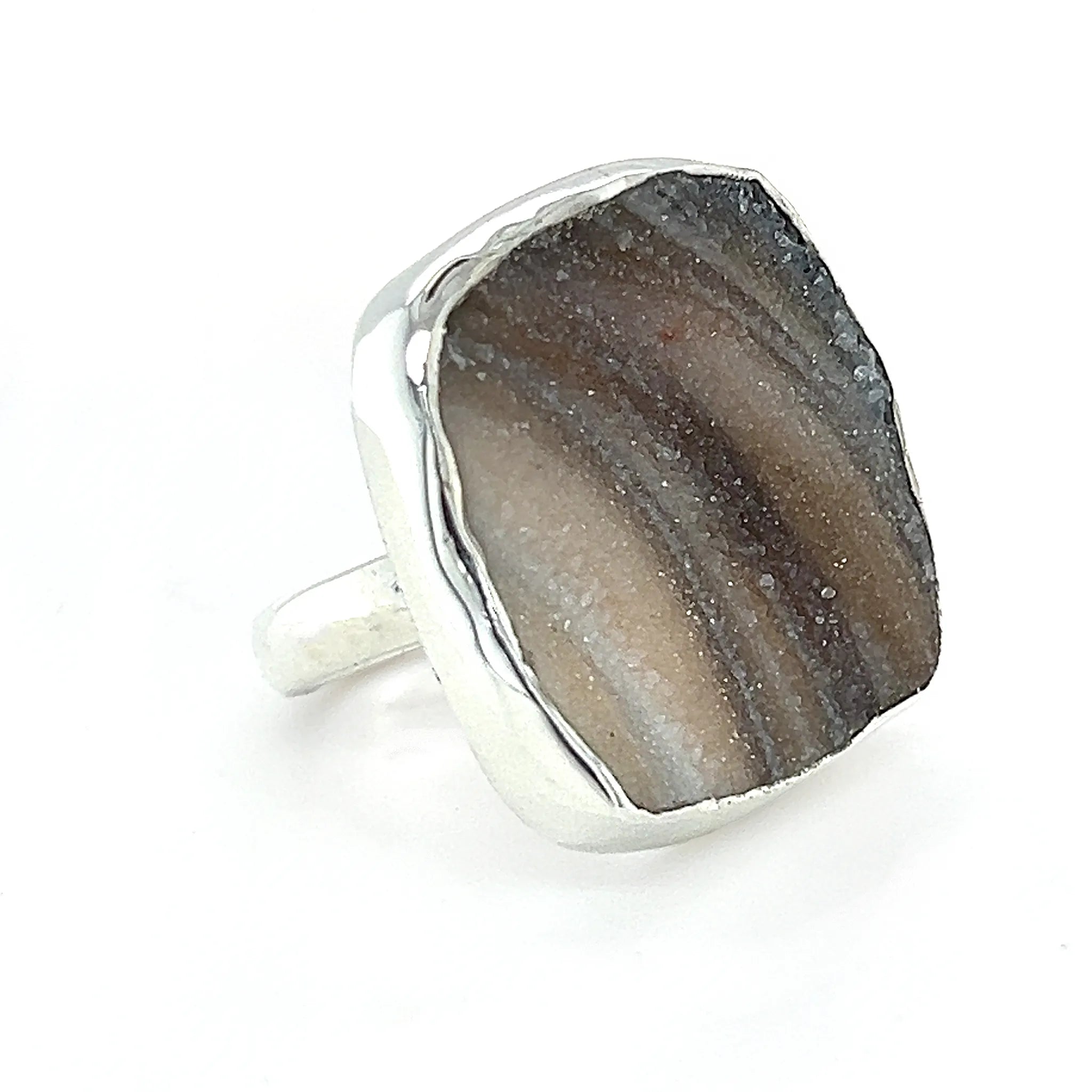 One of the joys of wearing Crystal Rings is the ability to really explore your Stone as it is easily visible to you. It makes for a great distraction to stare at something truly beautiful and captivating! Pendants and earrings are a pleasure to wear but often you don't see them! Crystals worn on your hands invite your gaze and your touch. It's a great way to bond with and experiment with these special stones (and of course, they can be flaunted!!). Some rings in our collection are intentionally simple by design. High quality stones set in a classic style design. Elegant everyday rings that easily become favourites. Others follow the trend of larger statement pieces. Generous slices of Gemstones, or complete crystals set in Sterling Silver that simply must be noticed! Take a risk and flaunt a unique statement crystal ring. They often invite comment, and when teamed up with a matching Pendant or Earrings create a powerful expression that is totally of your design. Please visit our Guide to discovering your Ring Size. Most rings can be re-sized a size or two for a nominal cost of around $30 AUD with your local manufacturing jeweller. This is dependant on the style, setting and jeweller's costs. Small plastic sleeves can also be purchased to take up a half to full size, which are easily removed, and unnoticeable when the ring is worn. Best, however, to know your correct size and buy a ring that is already a close fit for you. Consider also the notion of wearing a ring on a finger that may be unfamiliar to you. Try something new! If you need to be sure of your ring size, please drop into our Gallery if in Brisbane where we can measure you with calibrated bands and record your sizes for you.