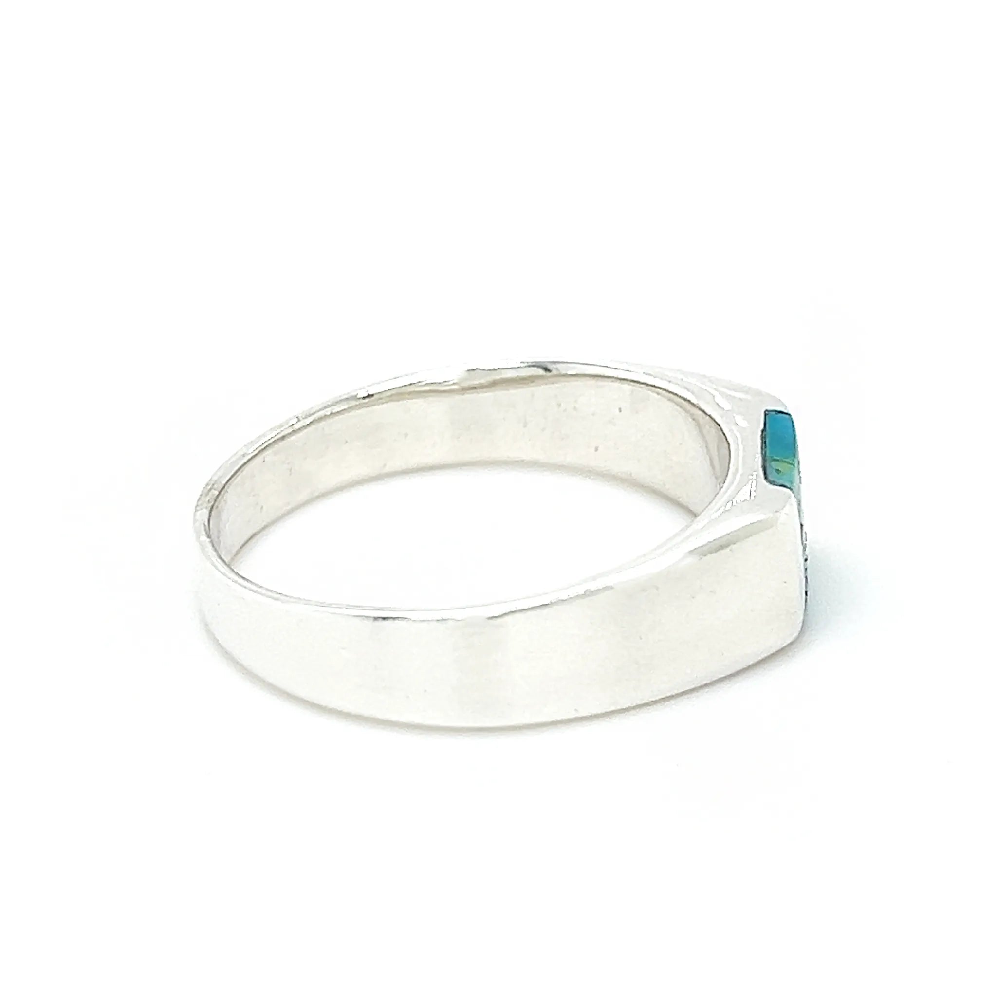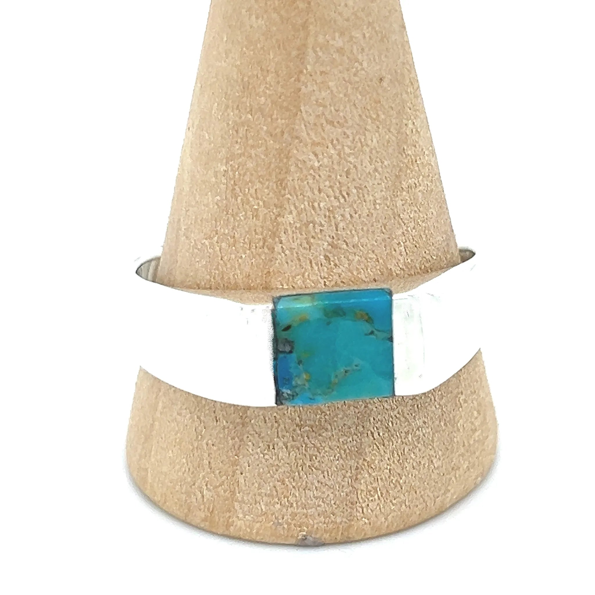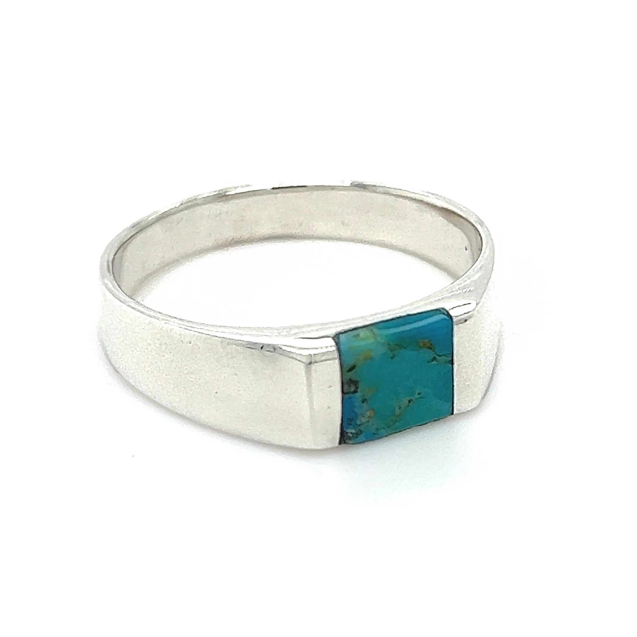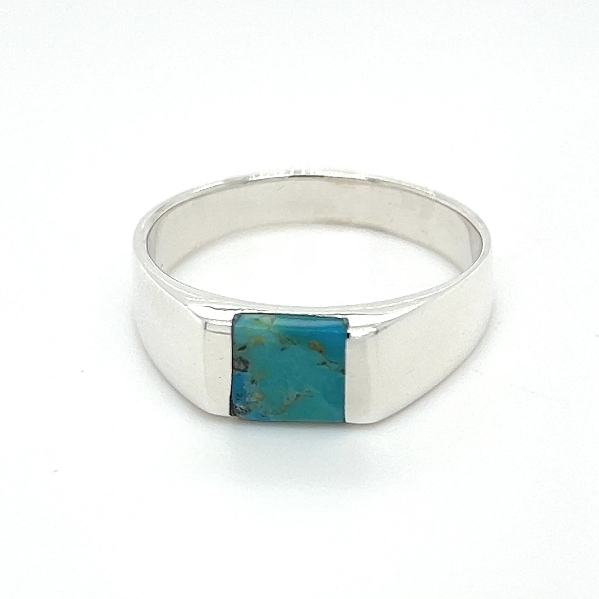 This Silver Turquoise Ring features a natural Turquoise stone set in a sleek, polished .925 sterling silver band. Its modern design is unisex, making it easy to wear every day. Available in US size 11.25 with a 21.15 cm inner diameter.