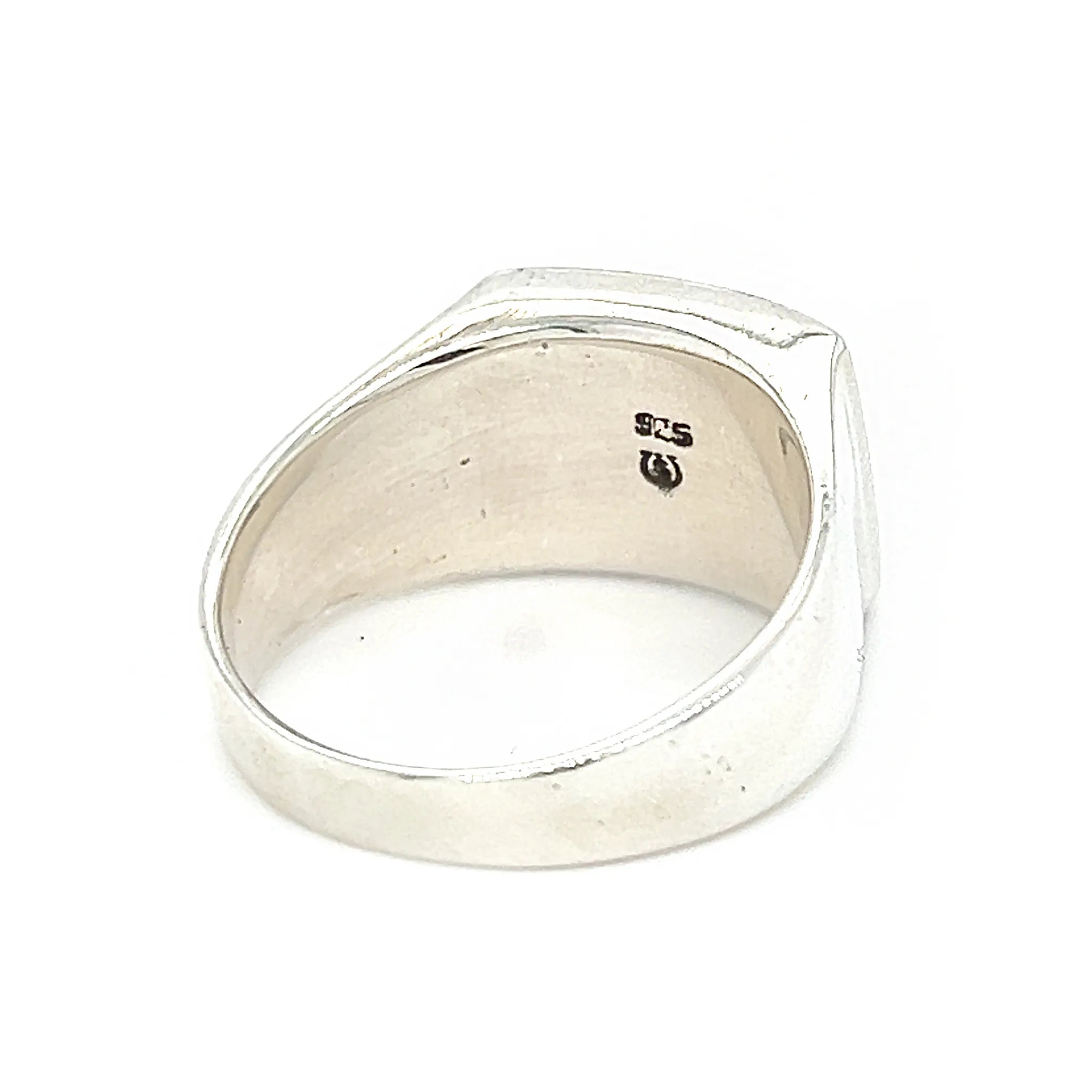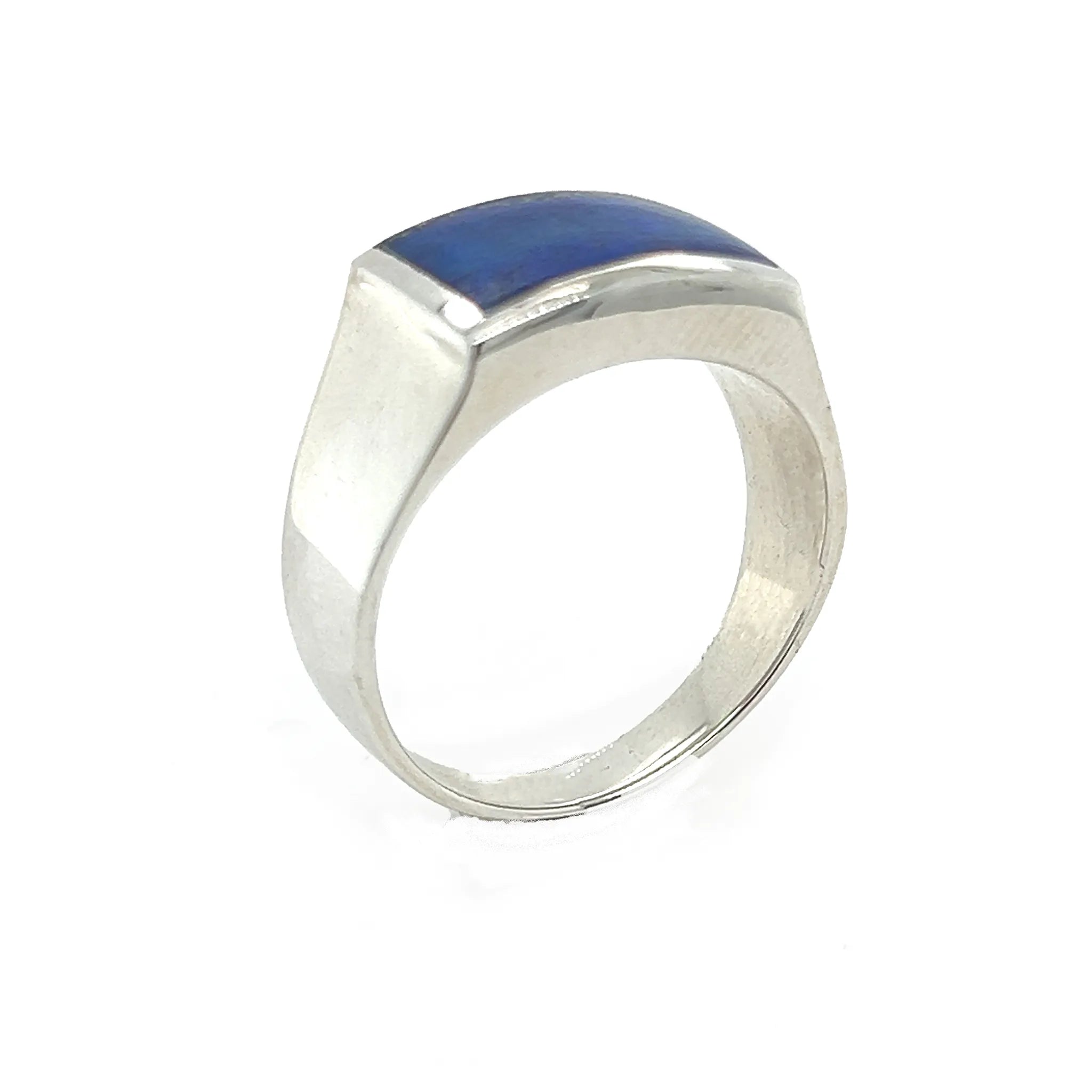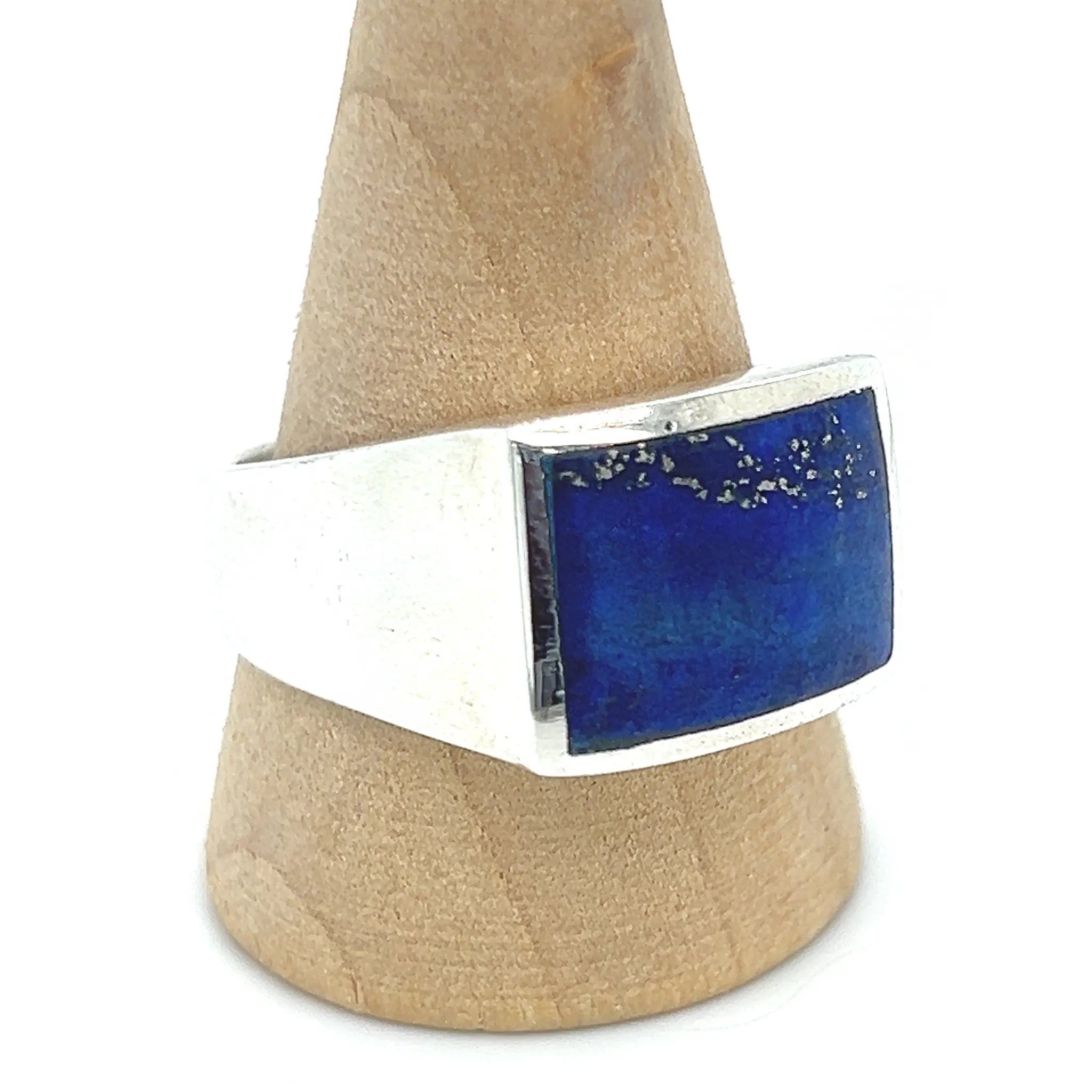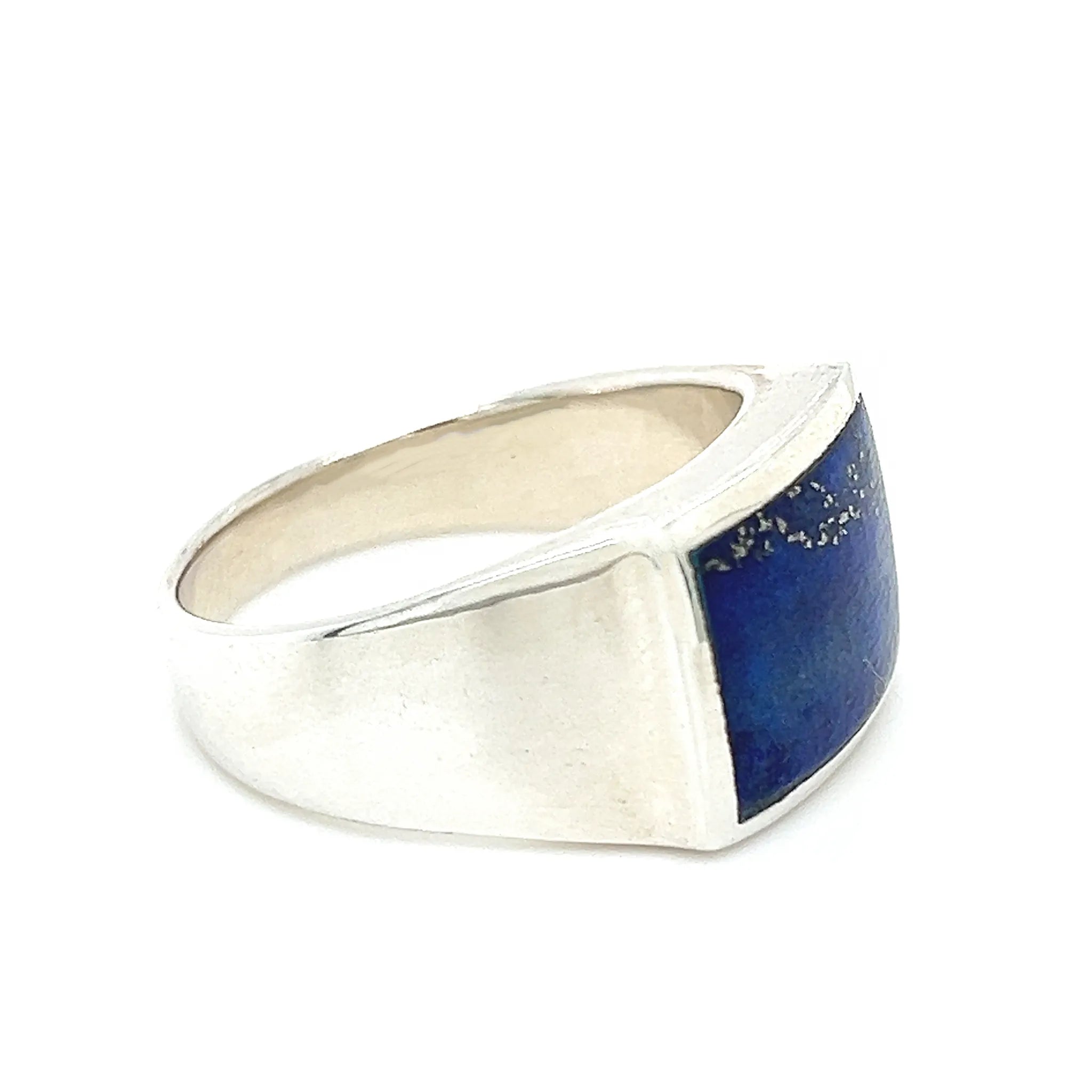 This Statement Lapis Ring features a rectangular natural Lapis Lazuli stone with a few shimmering Pyrite specks, set in a sleek .925 sterling silver band. Its bold, clean design is unisex and perfect for everyday wear or special occasions.