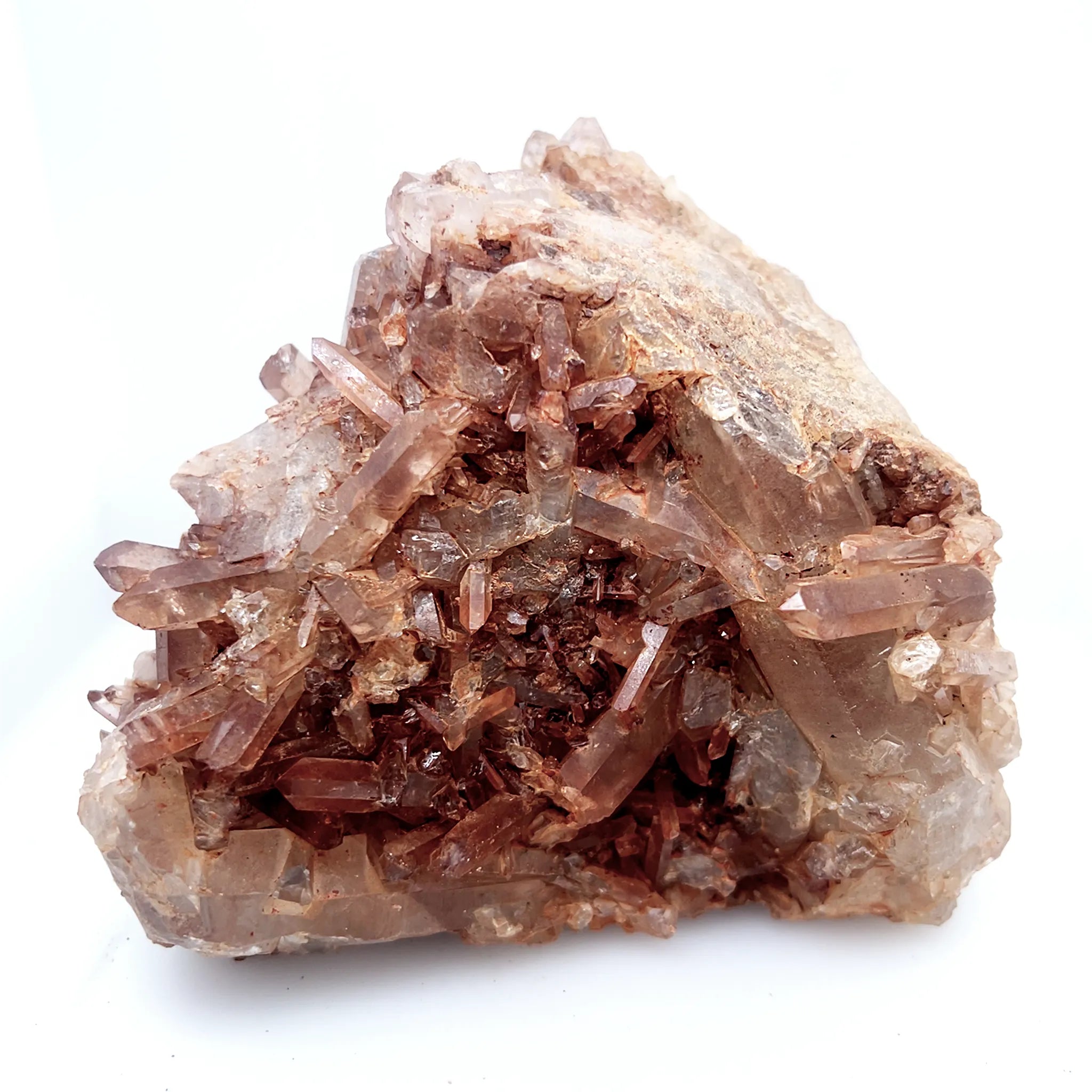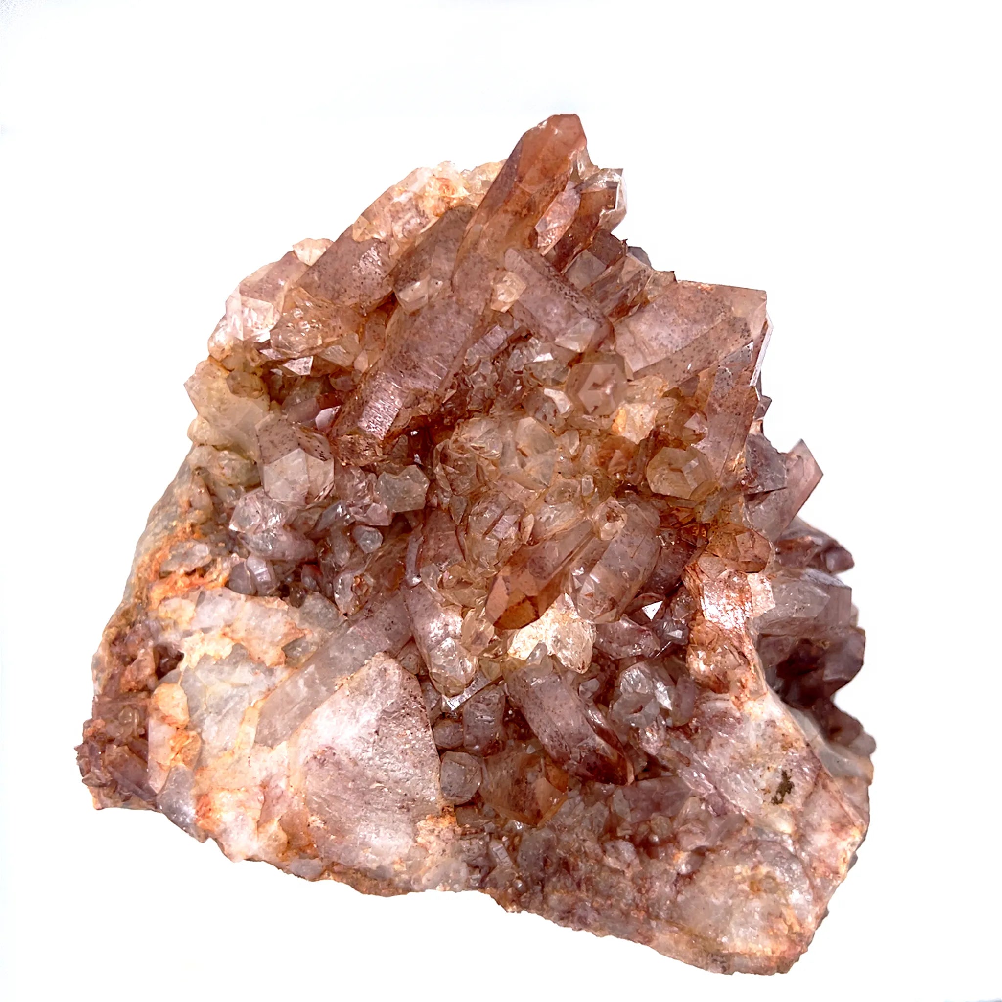 This large Tangerine Quartz cluster showcases a vibrant array of orange crystal points radiating from a natural matrix. Sourced from Brazil, it features striking clarity and raw texture, perfect for display or healing spaces.