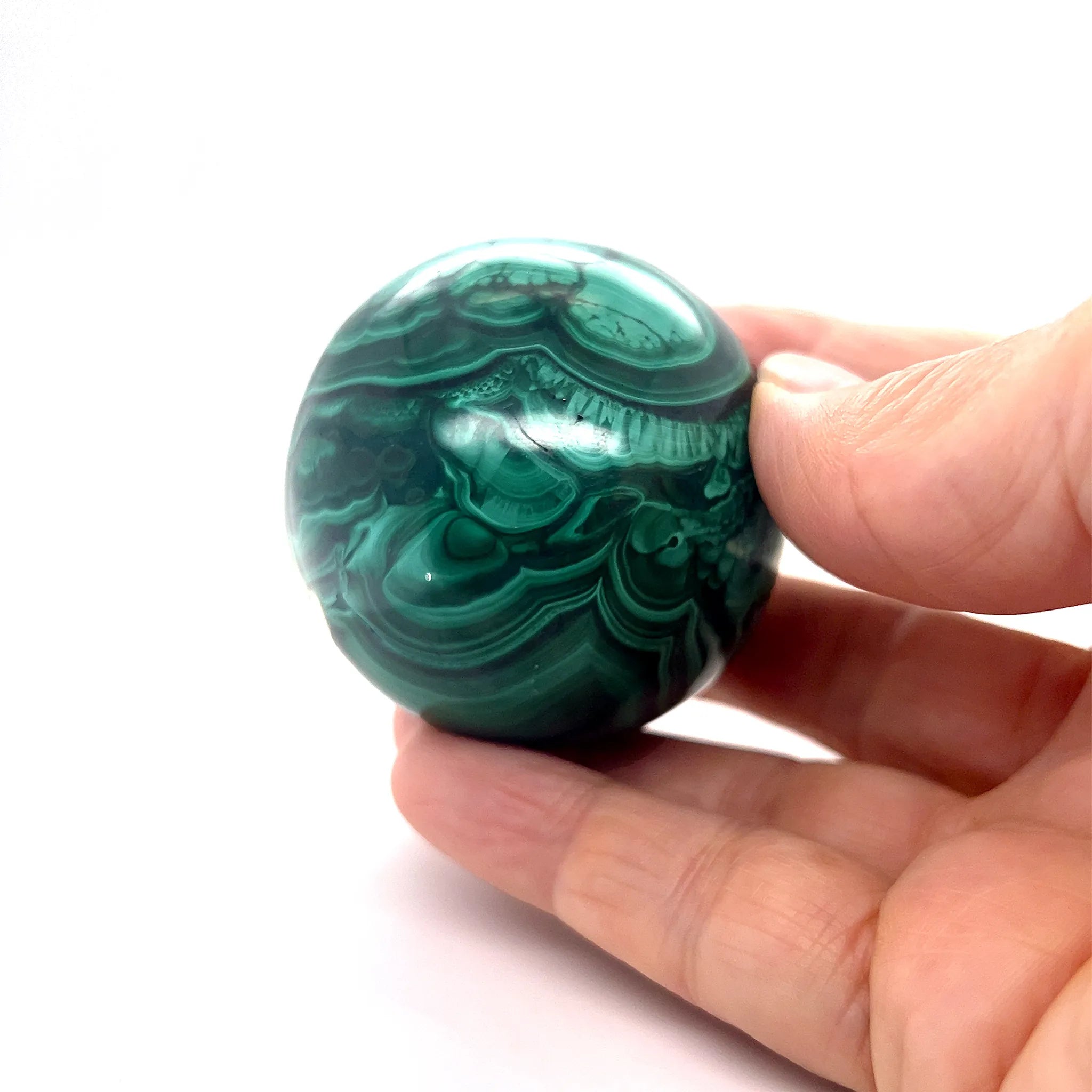 This crystal is a copper carbonate mineral with a hardness of 3.5 to 4. It can often form with Azurite and Chrysocolla. It is found in Zaire, Australia, Chile, South Africa and the USA.