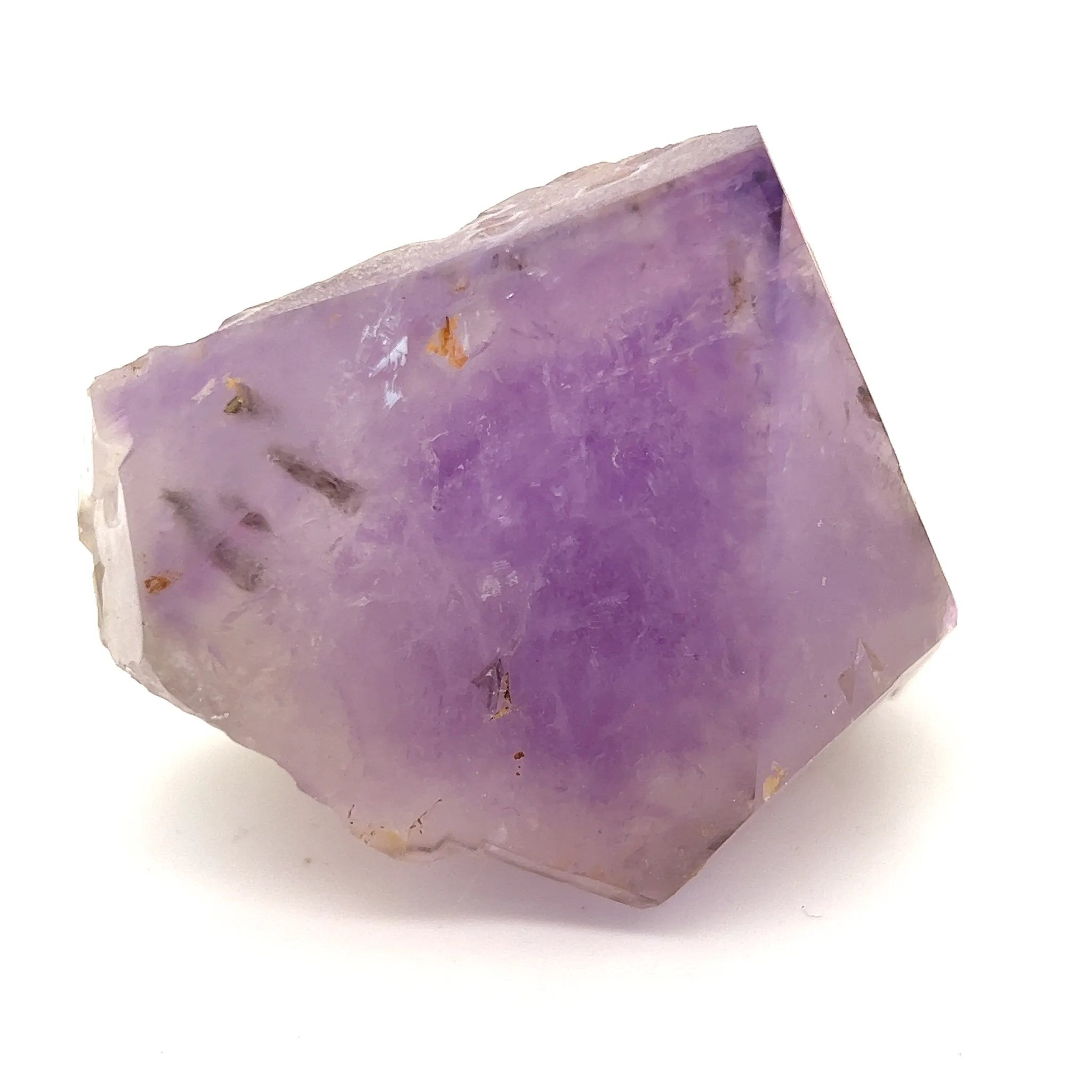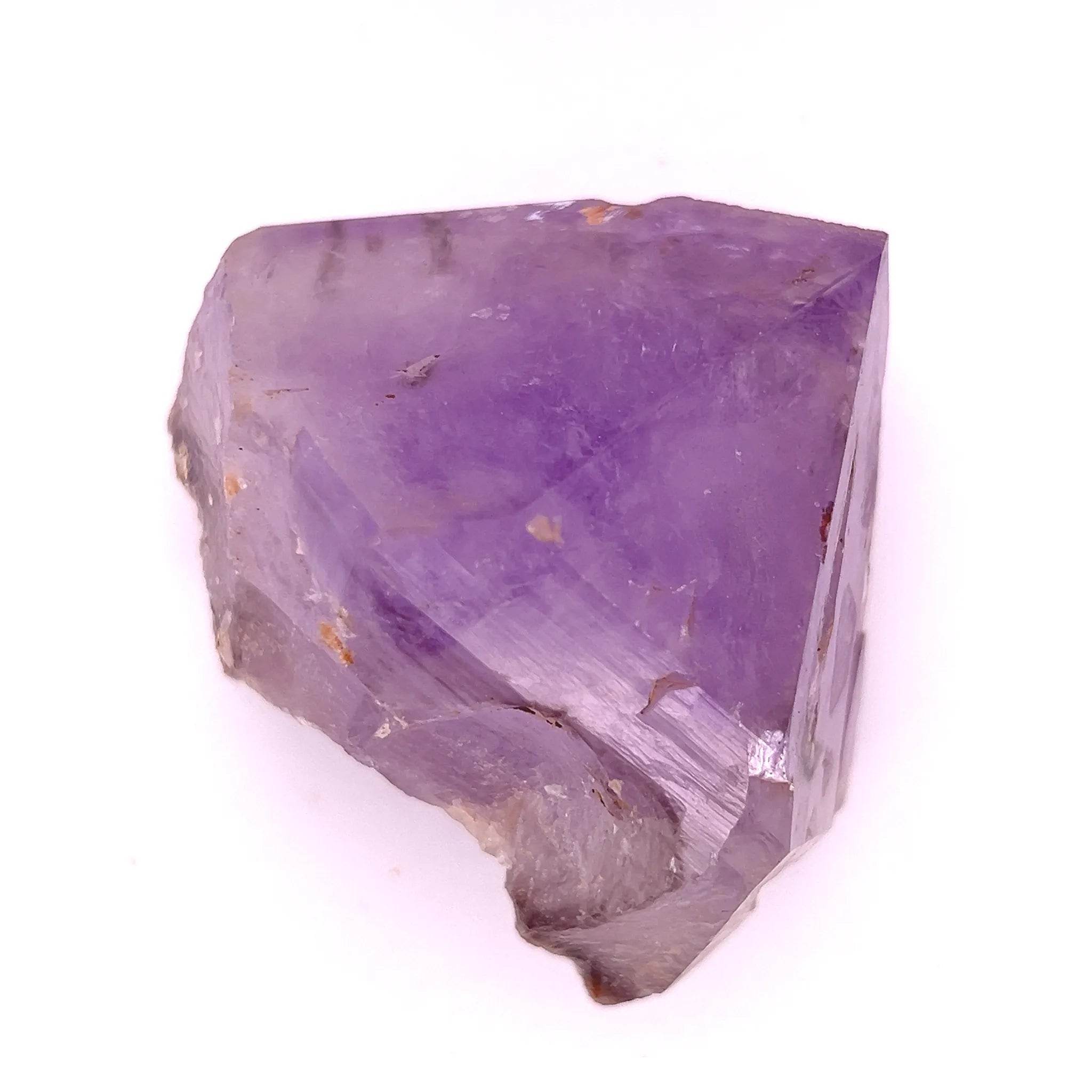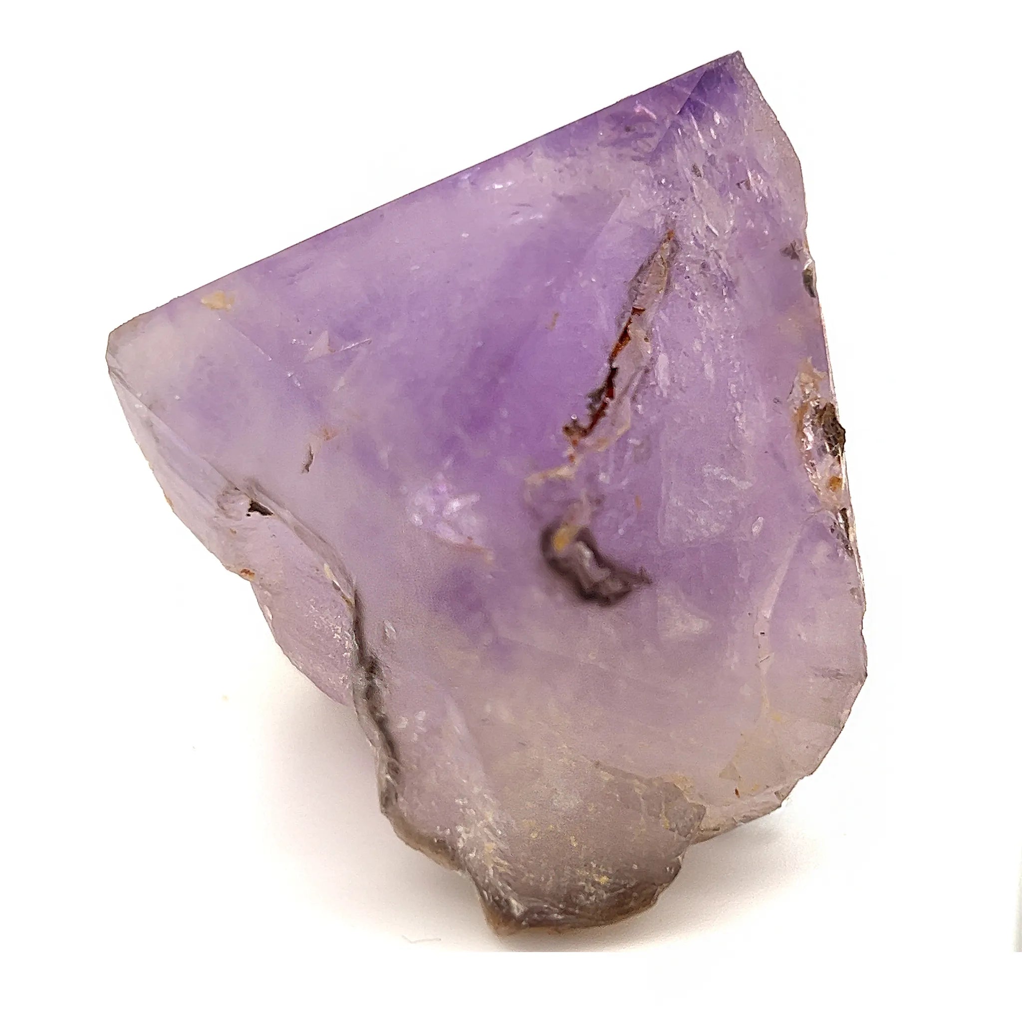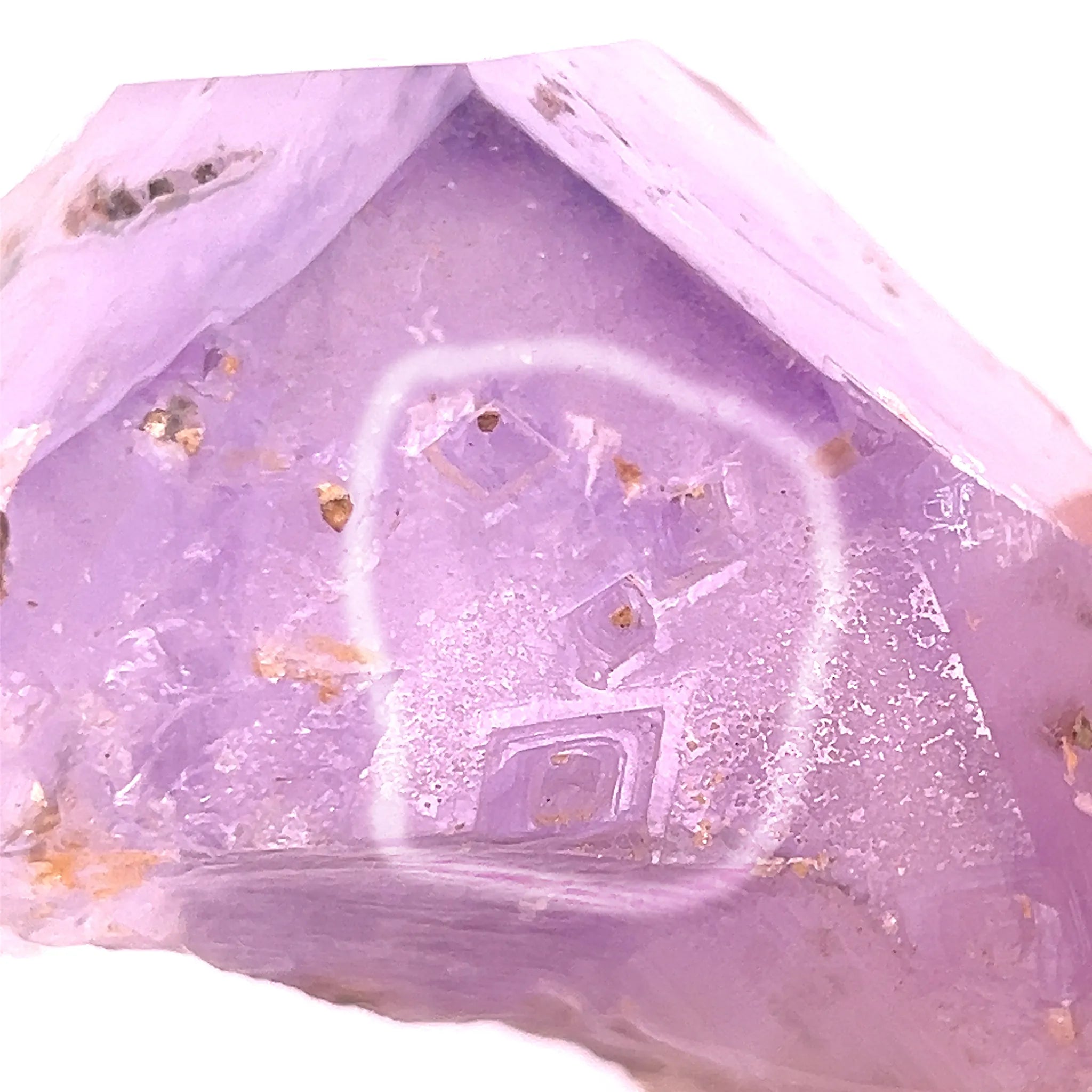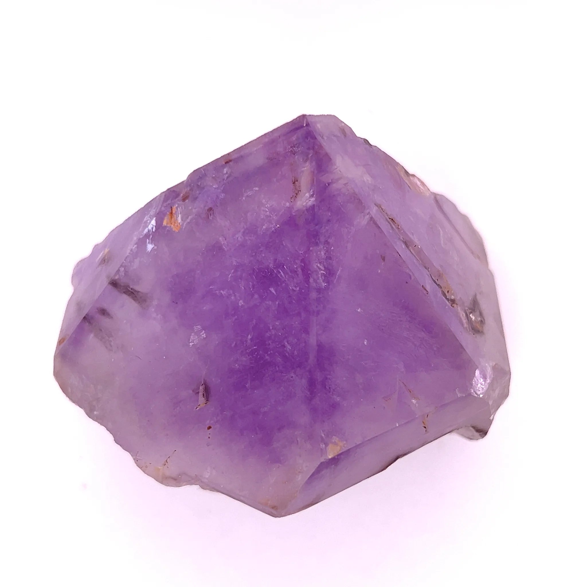 This Australian Amethyst point features a subtle smoky phantom along its edge, adding depth to its rugged and earthy appearance. Unlike the polished beauty of Brazilian specimens, this crystal retains a raw, natural look—perfect for those who appreciate authenticity. Unique etching, highlighted in one of the photos, enhances its character, making it a one-of-a-kind piece.