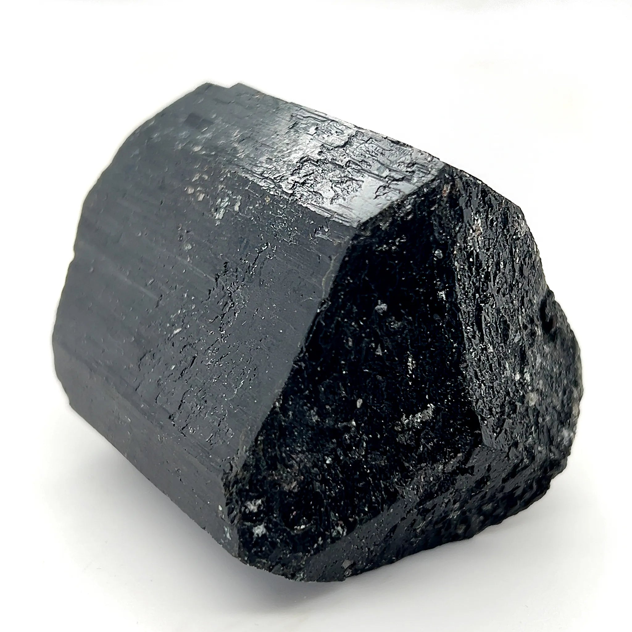 Black Tourmaline is a powerful grounding crystal, often used to shield against electromagnetic stress and negative energy. A unique and potent piece for crystal healing or personal energy work.