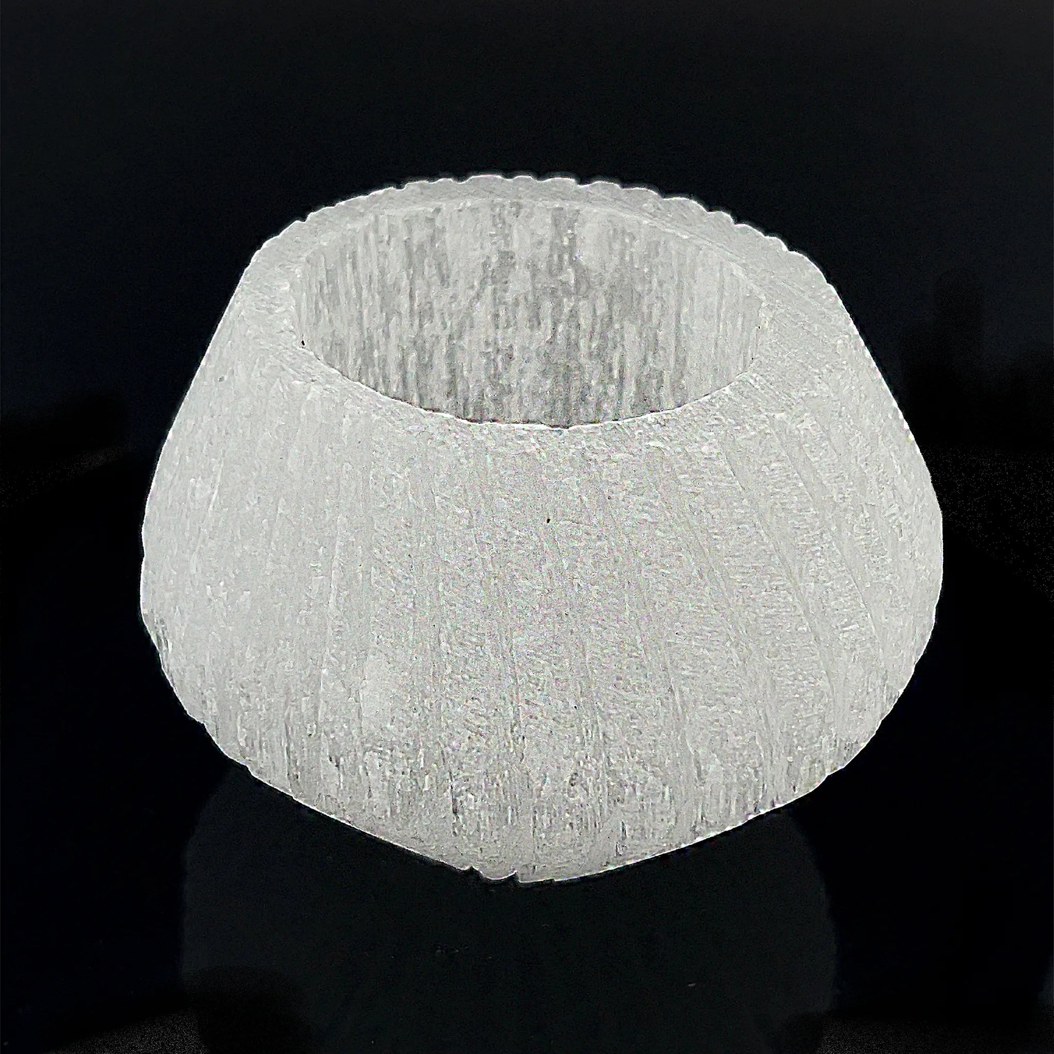 This small Selenite candle holder features a ripple design, enhancing its natural glow when lit with a tealight.
