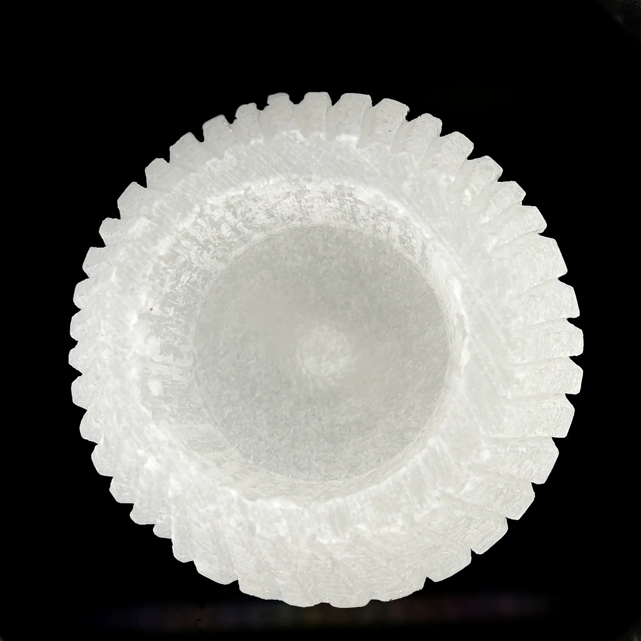 Carved from Moroccan Selenite, it radiates calming, purifying energy. Ideal for creating a peaceful ambiance, this piece supports emotional balance and energetic cleansing. The ripple design adds a gentle, flowing aesthetic—perfect for meditation spaces, bedside tables, or sacred altars.