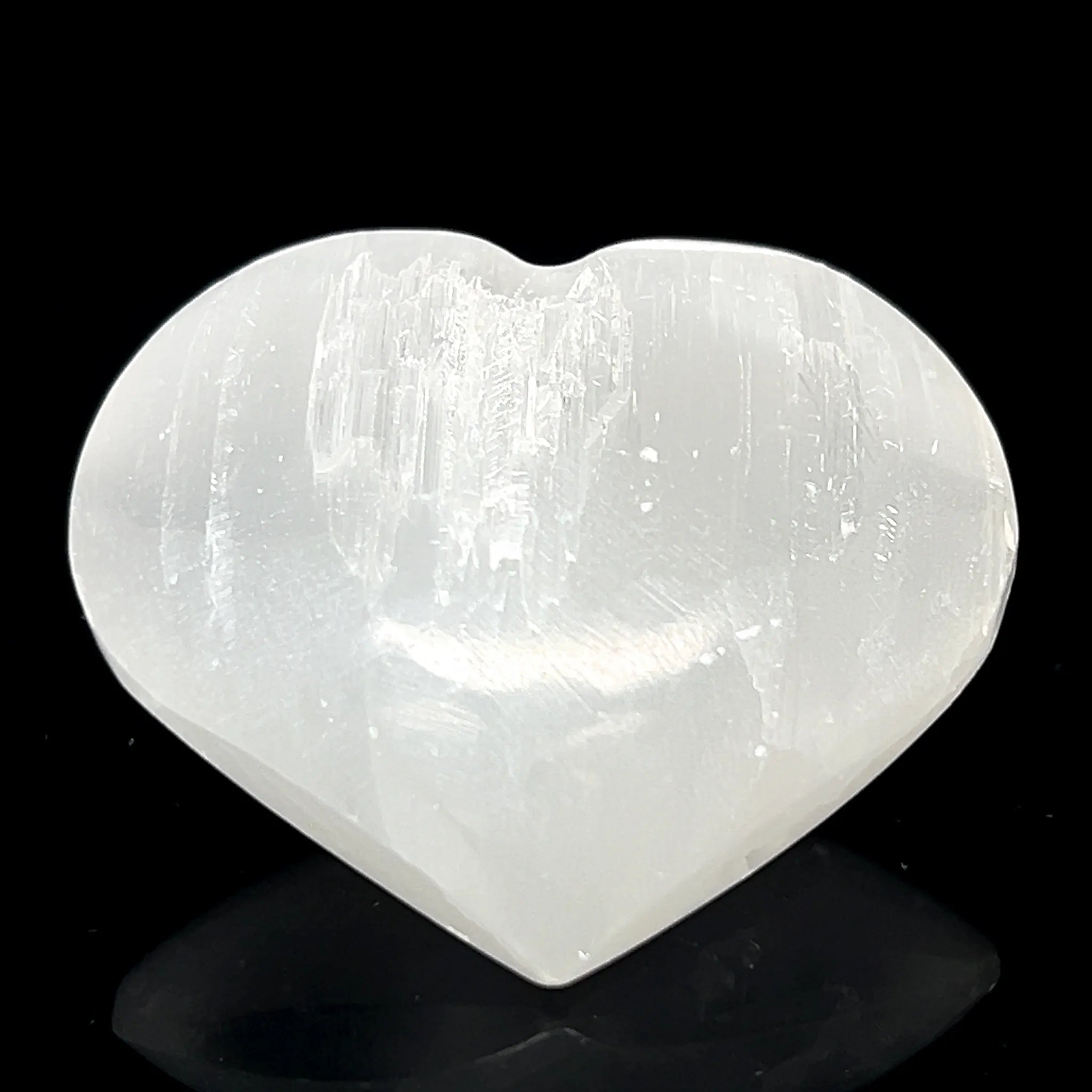This small polished Selenite heart is carved from natural Moroccan Selenite, known for its soothing energy and luminous, silky finish.