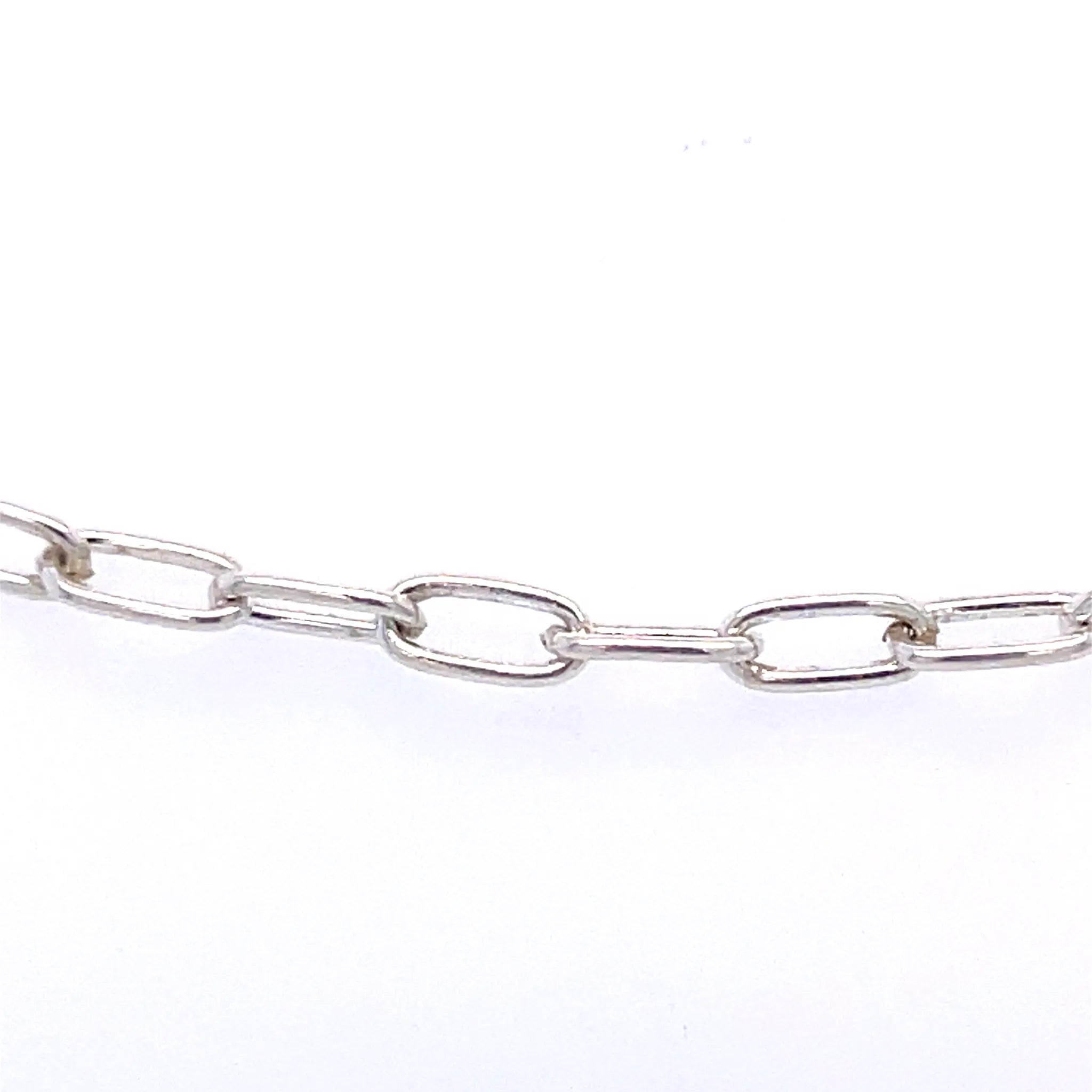 Our Silver Link Chain is crafted in polished .925 sterling silver with a 0.4mm width. The elongated oval links give it a refined yet versatile look, perfect for everyday wear or layering.