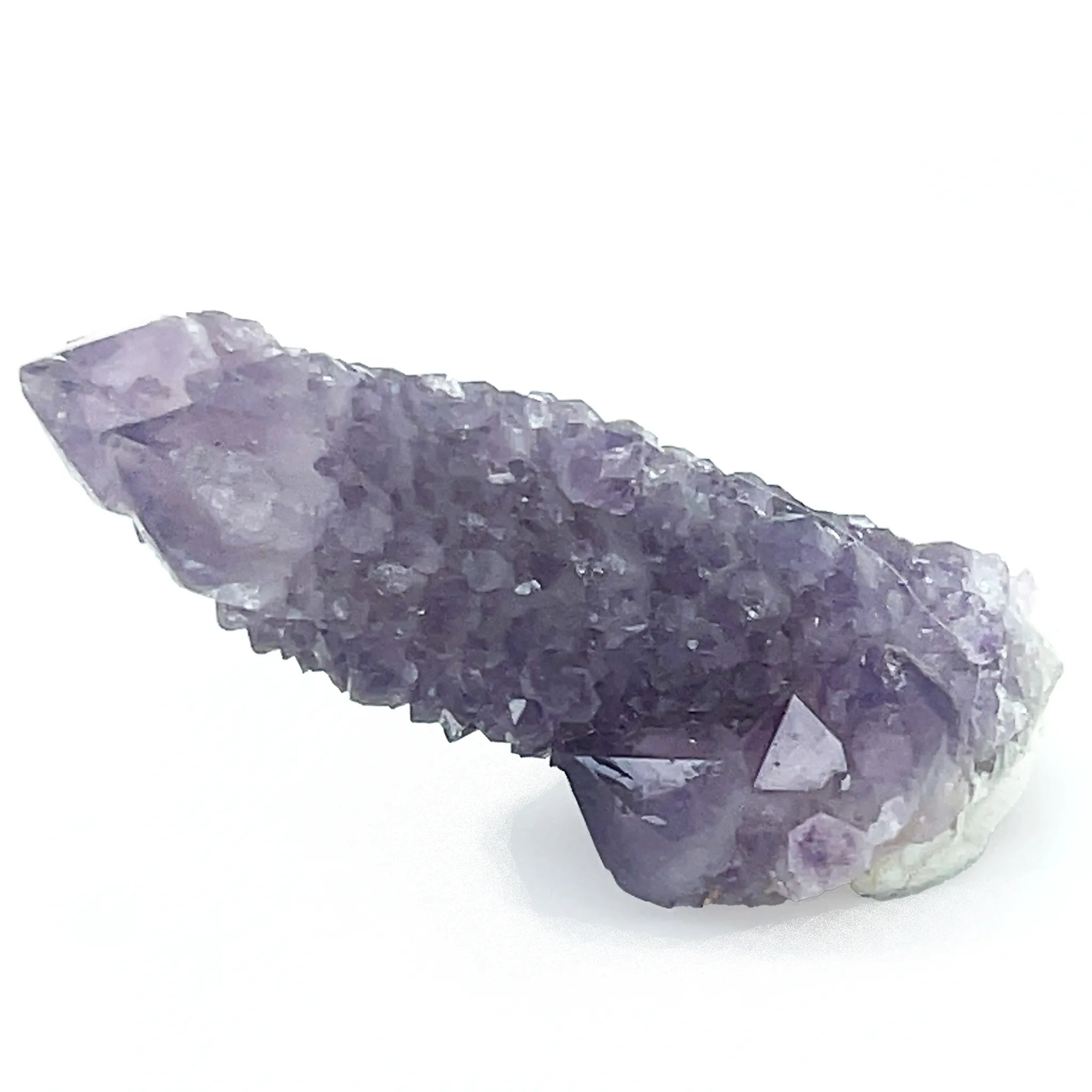 This Spirit QuartzPoint Specimen, also called Cactus Quartz, is a captivating crystal formation with a central point encrusted by shimmering druzy terminations. This natural cluster originates from South Africa and is prized for its high-vibration energy and beautiful lavender hue.