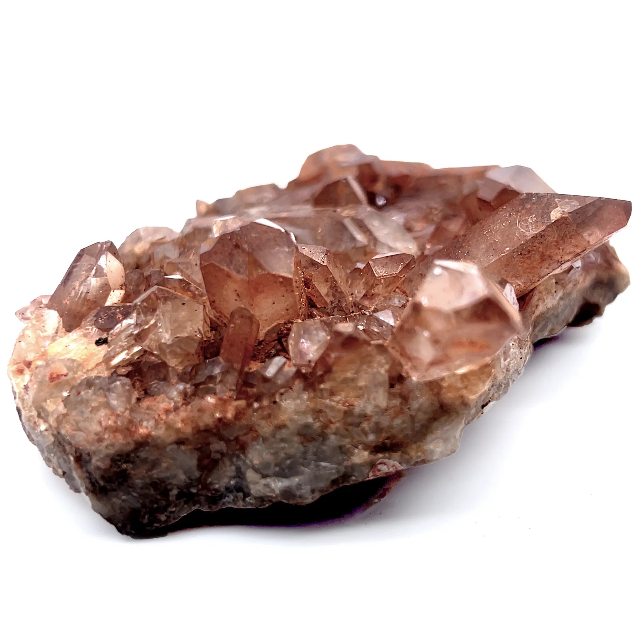 This vibrant Tangerine Quartz from Brazil showcases rich orange crystal points with a raw, earthy base. Naturally coloured by iron oxide, it’s prized for enhancing creativity, joyfulness, and emotional resilience.